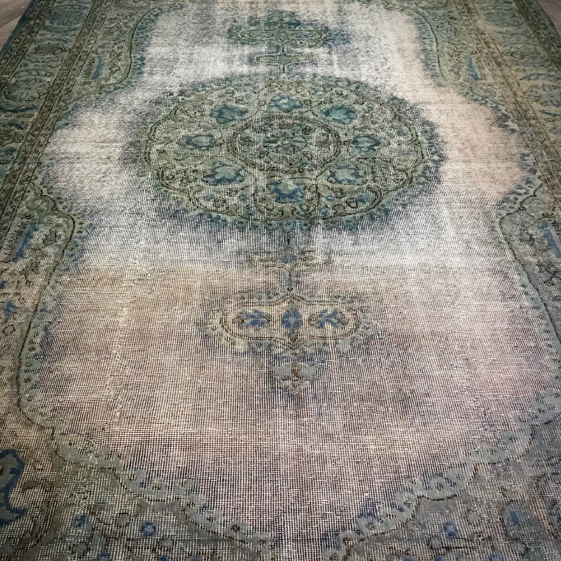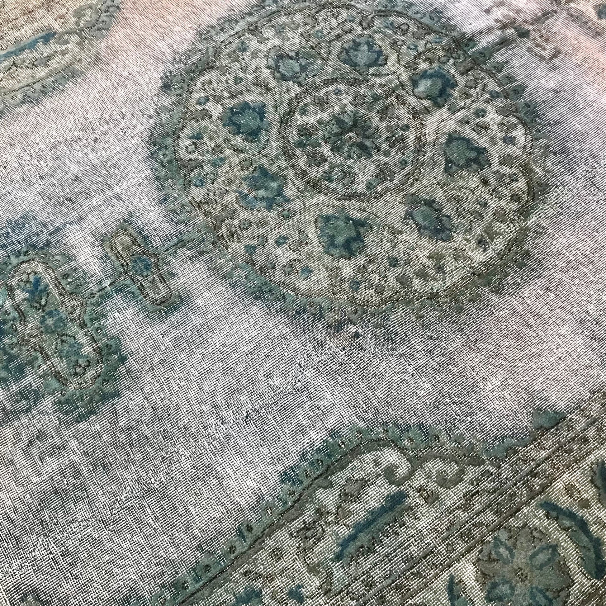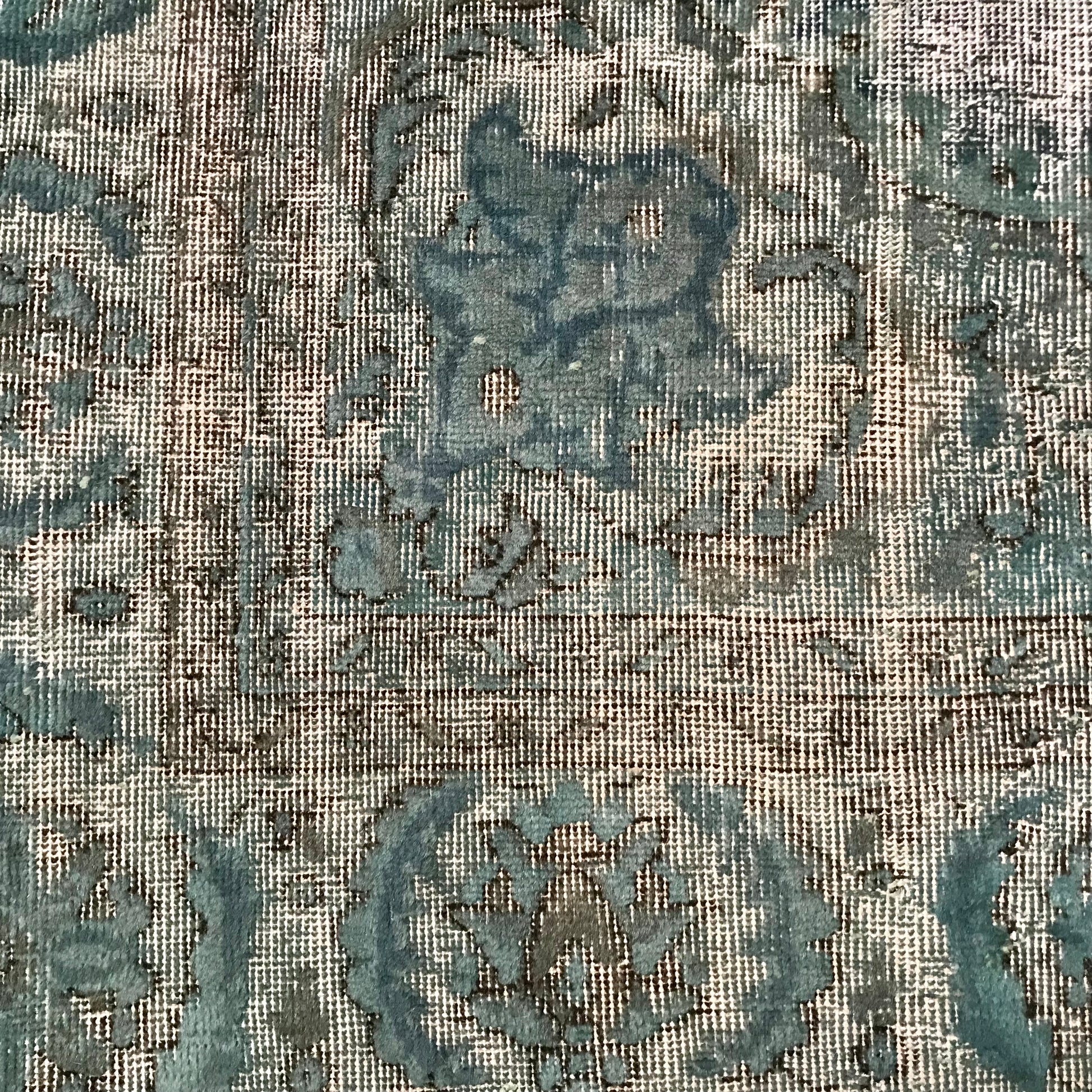 Antique Artisan Re-Worked Turkish Carpet Faded Turquoise