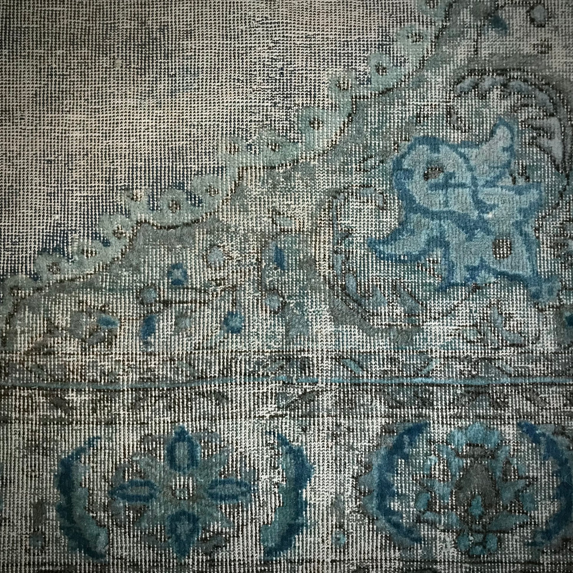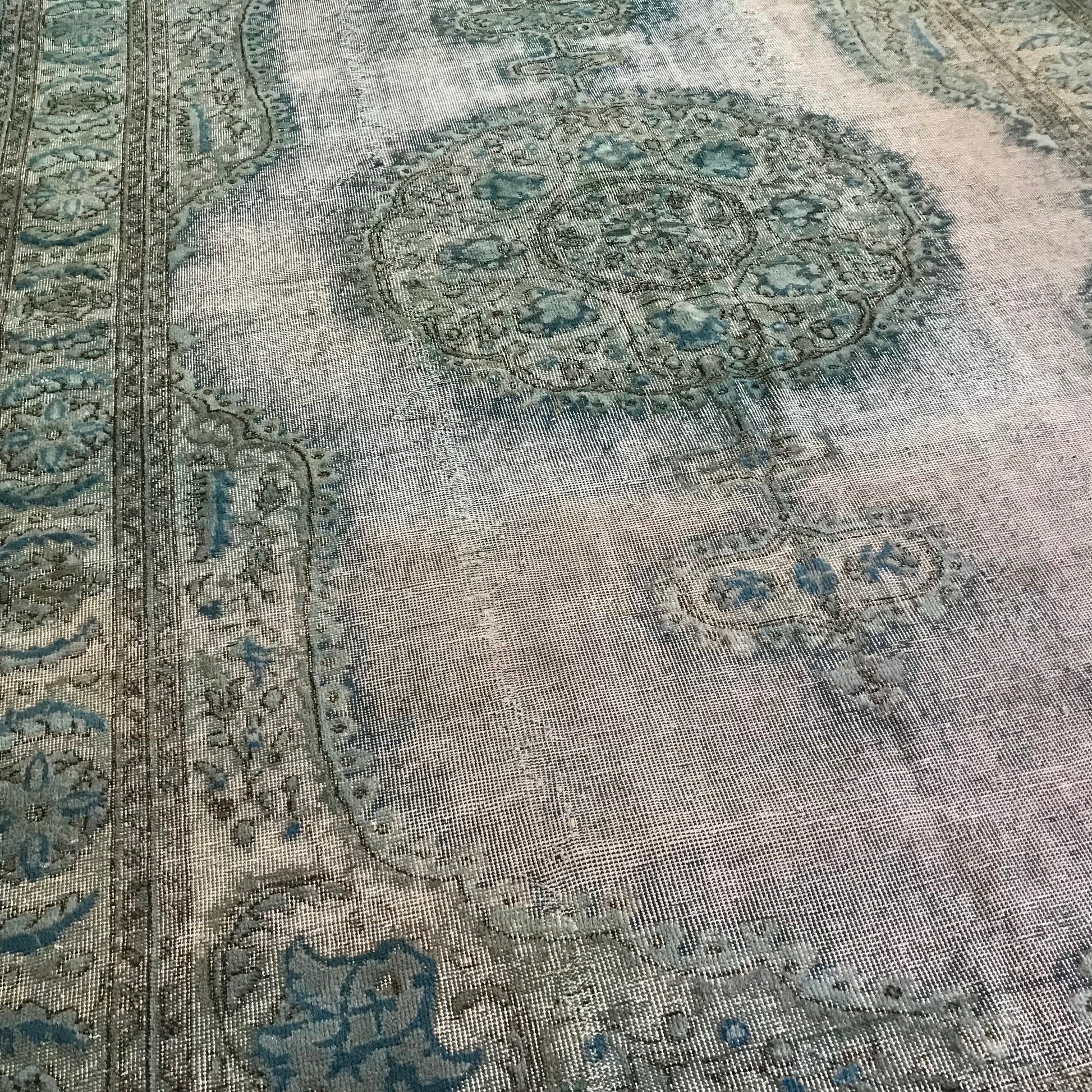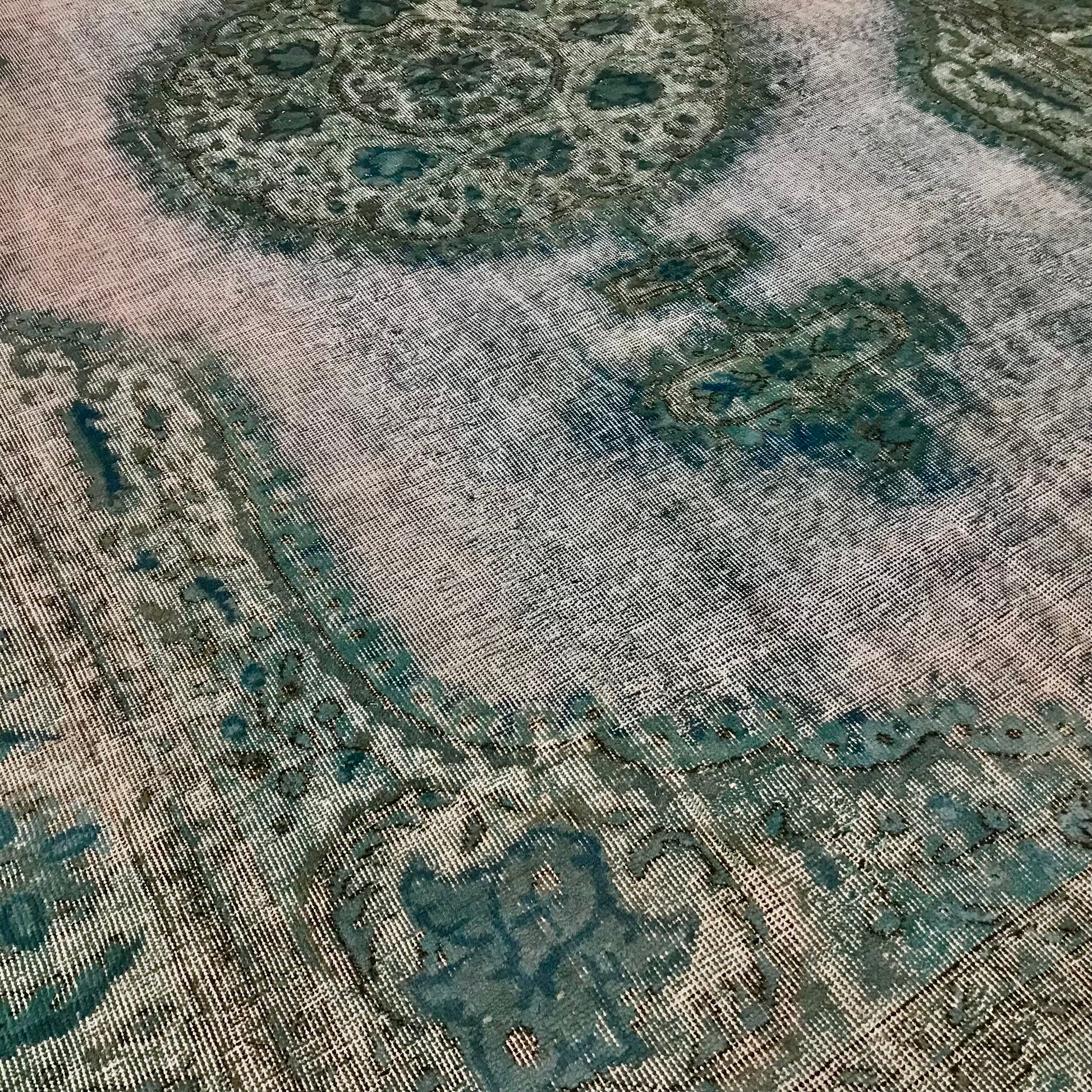 Antique Artisan Re-Worked Turkish Carpet Faded Turquoise