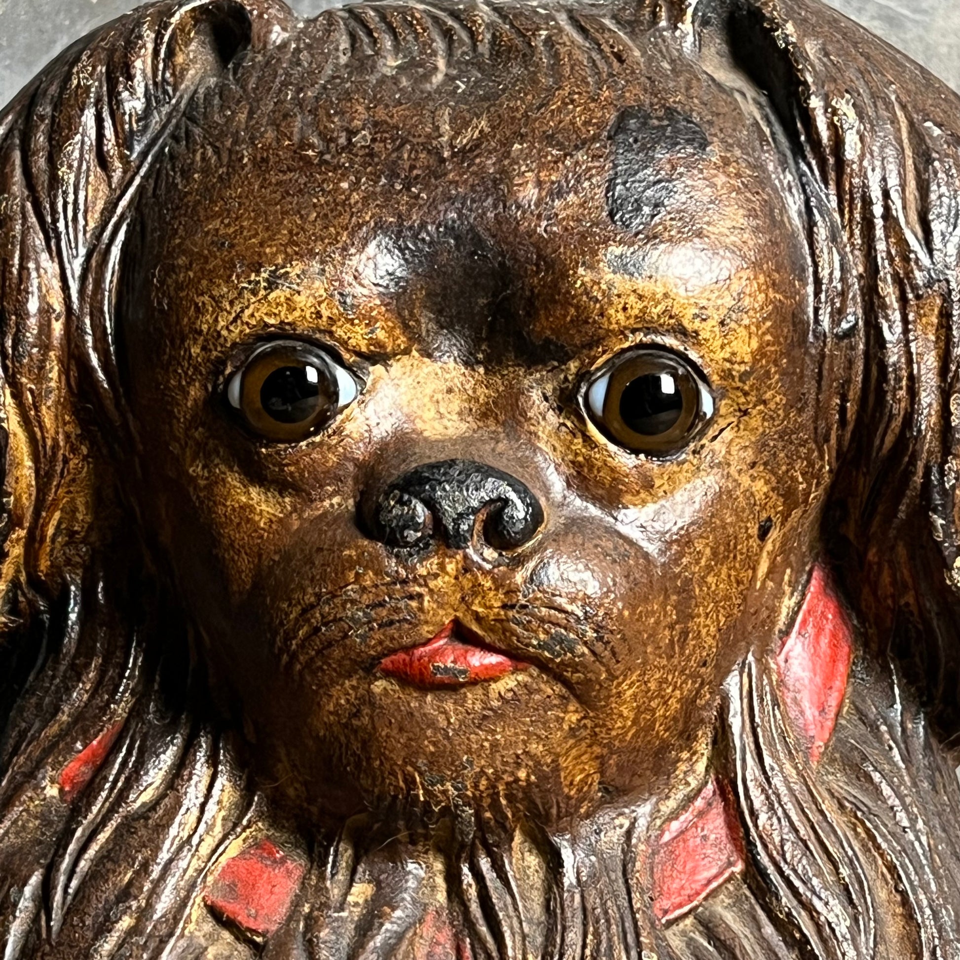 Created in cast iron, hand-painted in enamels with realistic glass eyes - this dog really is a charming little fella!