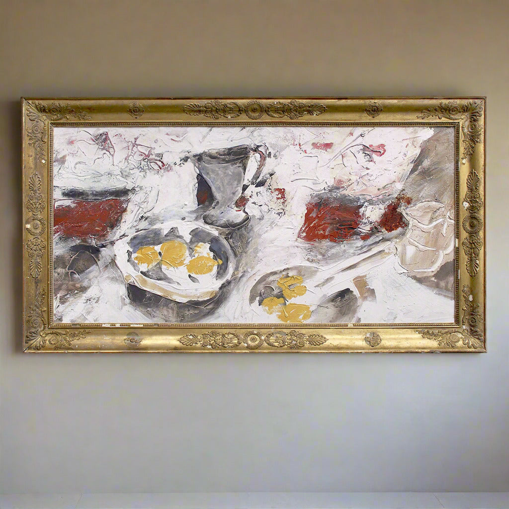 The red wax vessels—once used in a London bronze foundry to cast works by Elizabeth Frink and Henry Moore—introduce a subtle narrative of process and legacy. In Finestra, I explore the relationship between the functional and the poetic: how humble, timeworn objects, when placed in a certain light, carry a kind of still resonance. The work is not only a still life but a window into a contemplative space where past and present quietly converge."