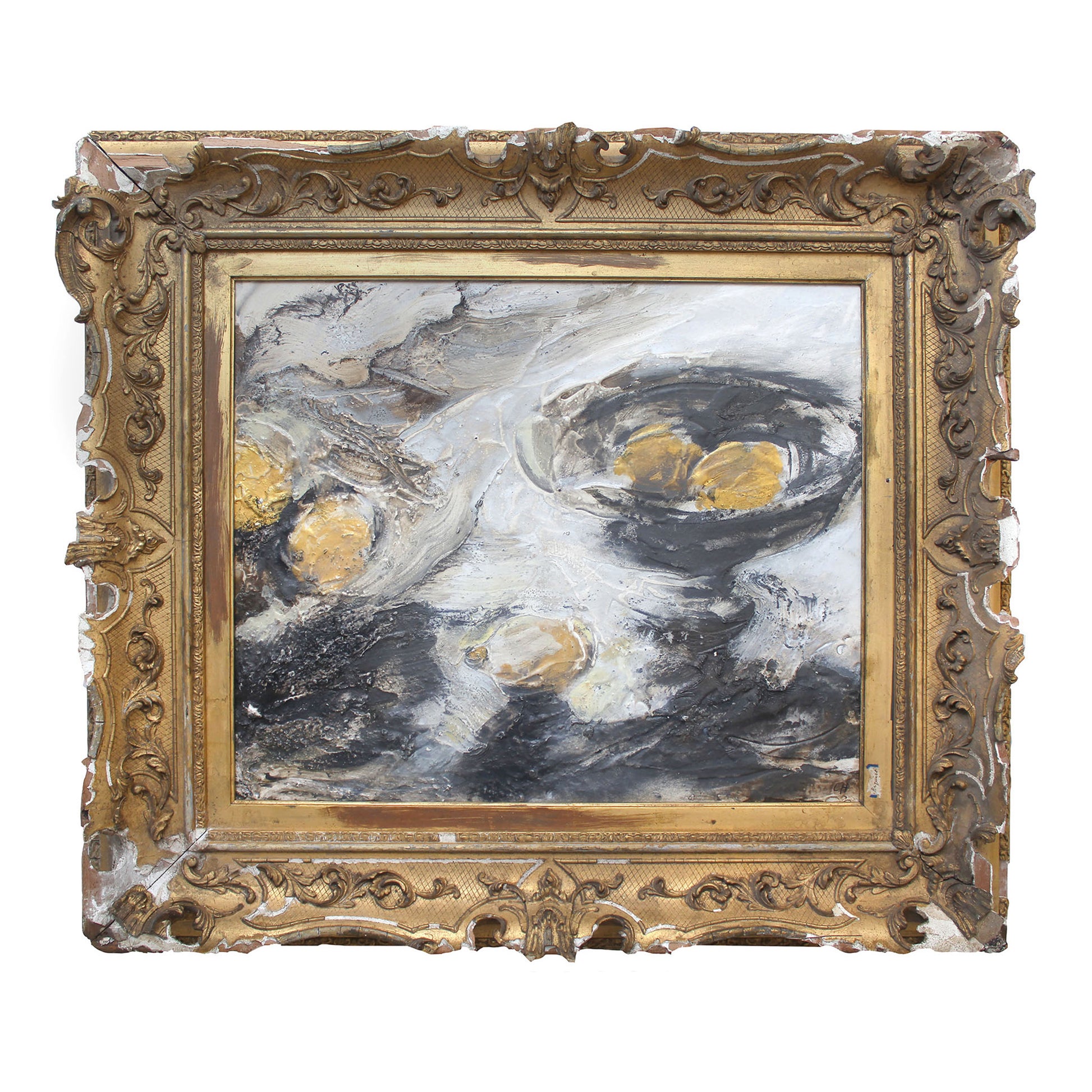 Oil, graphite and gesso on board in antique frame.
