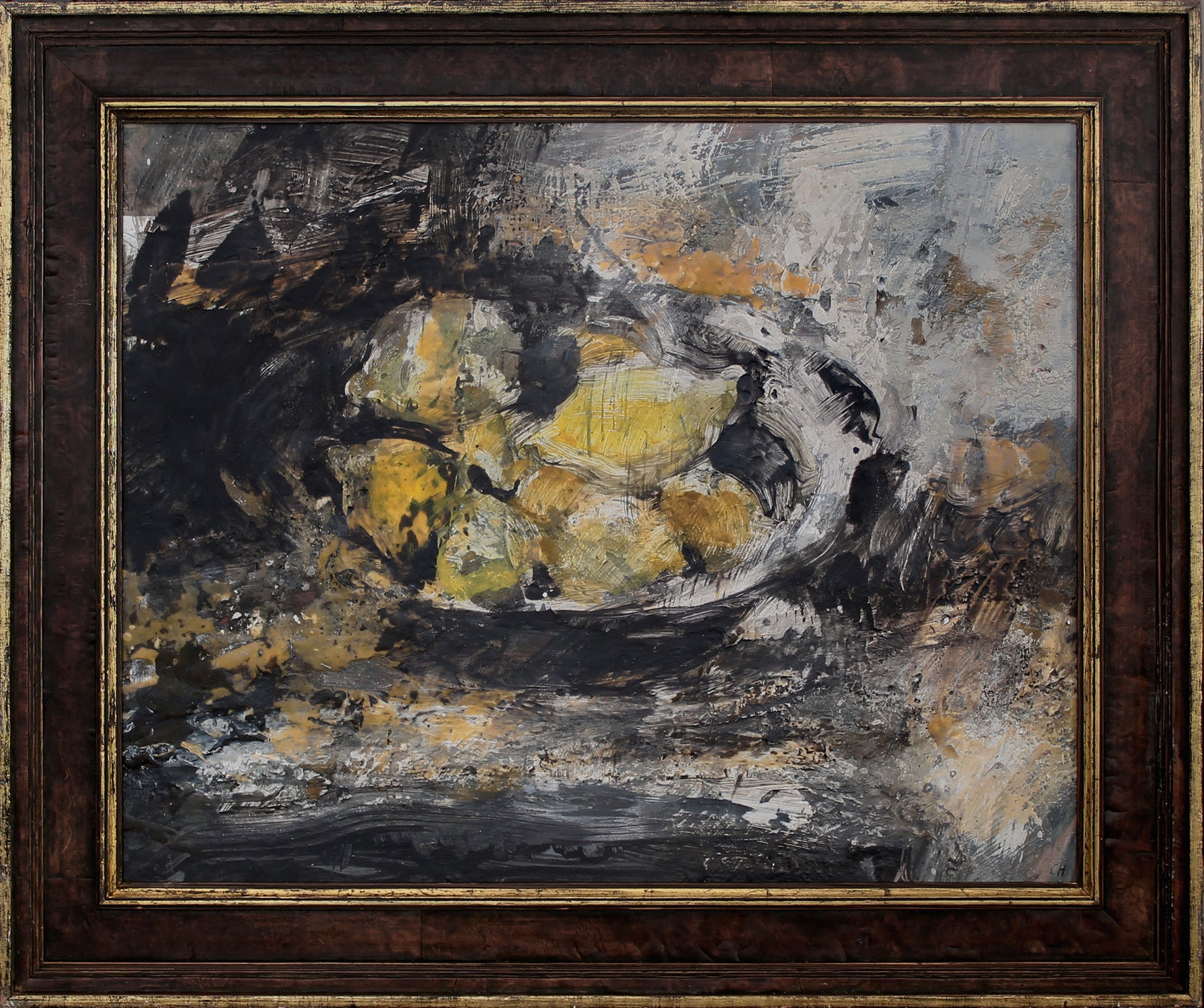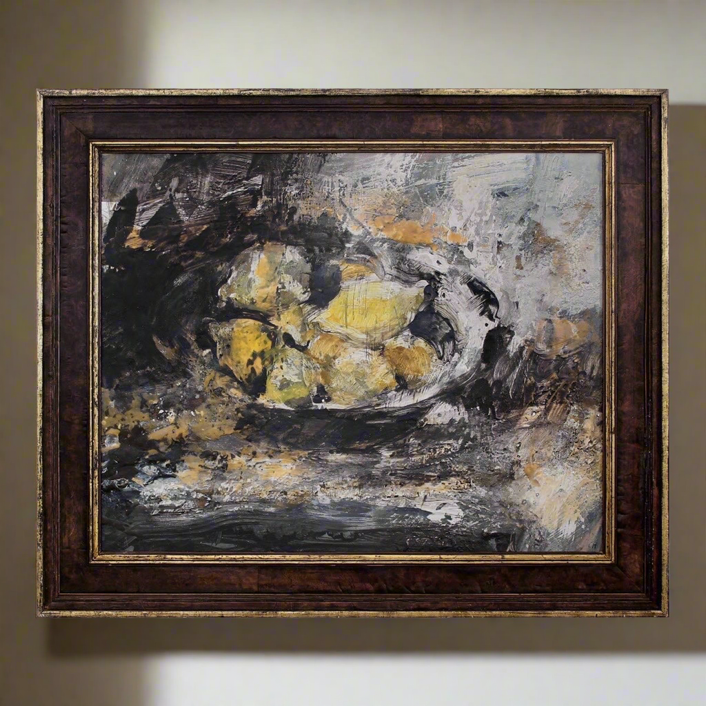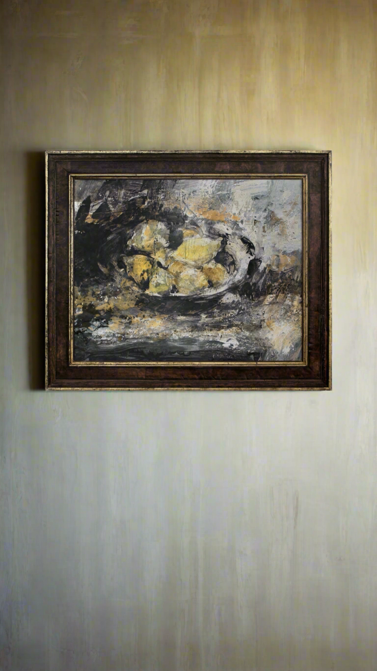 “My kind antique dealer friends smuggled leafy lemons direct from Italy for me this Summer. They call out in their celebration of distant warmer climes. They are, heat, sun, happiness and joy! Placed within a simple medieval pewter bowl in this contemplative space they feel symbolic. I painted en plein air in the bright sharp sunshine, dramatic contrasts and luminous light bounce around the still life which emerges from the shadows.” - Chloë Holt RCA FRSA