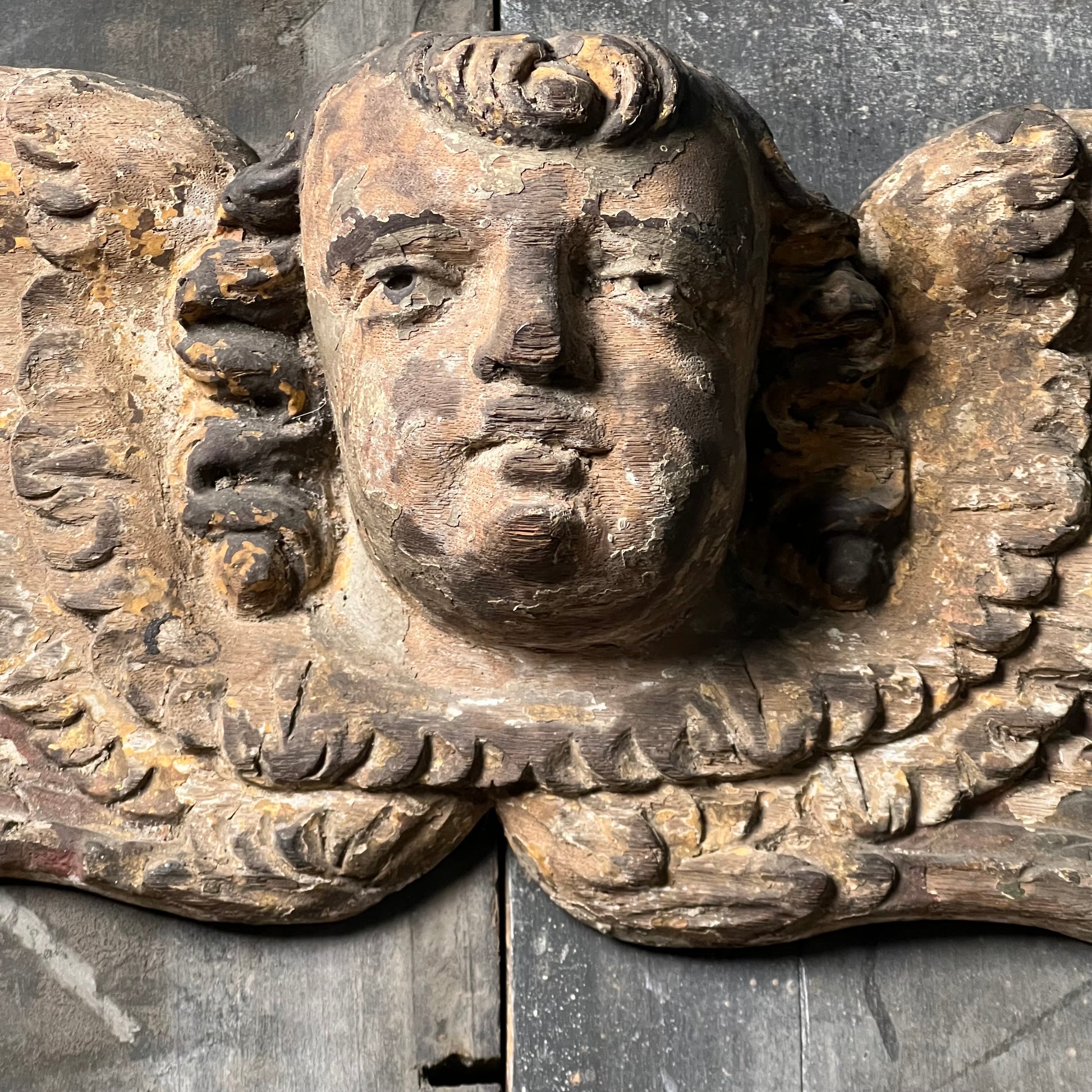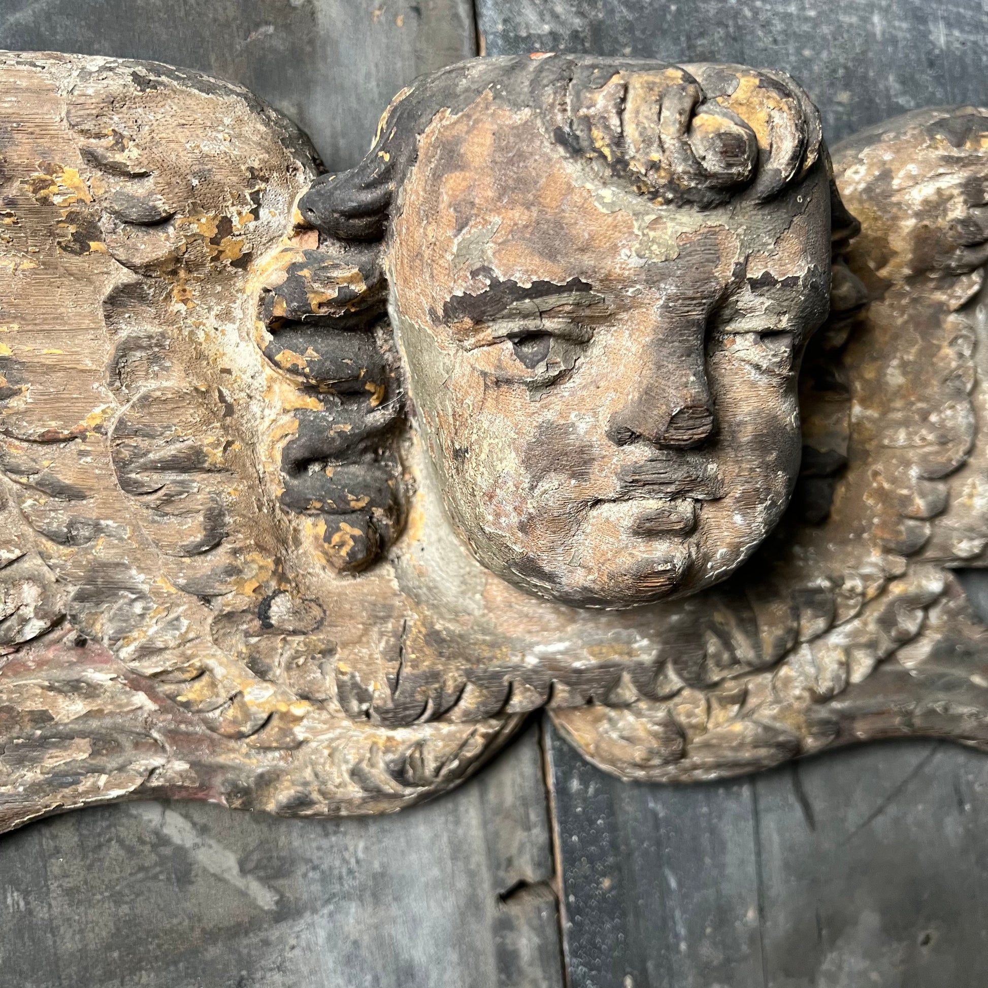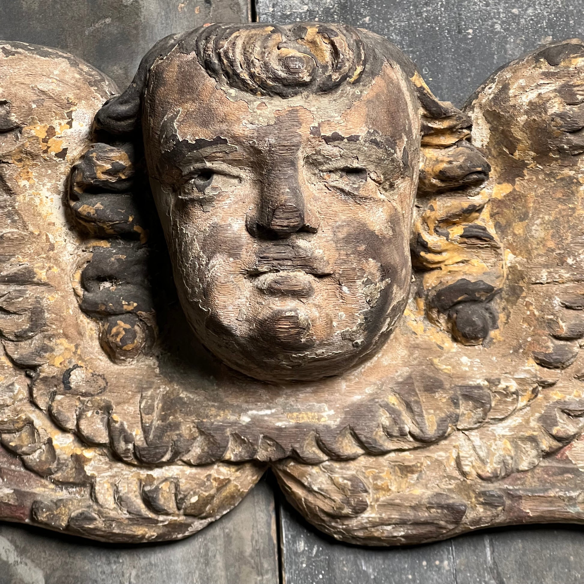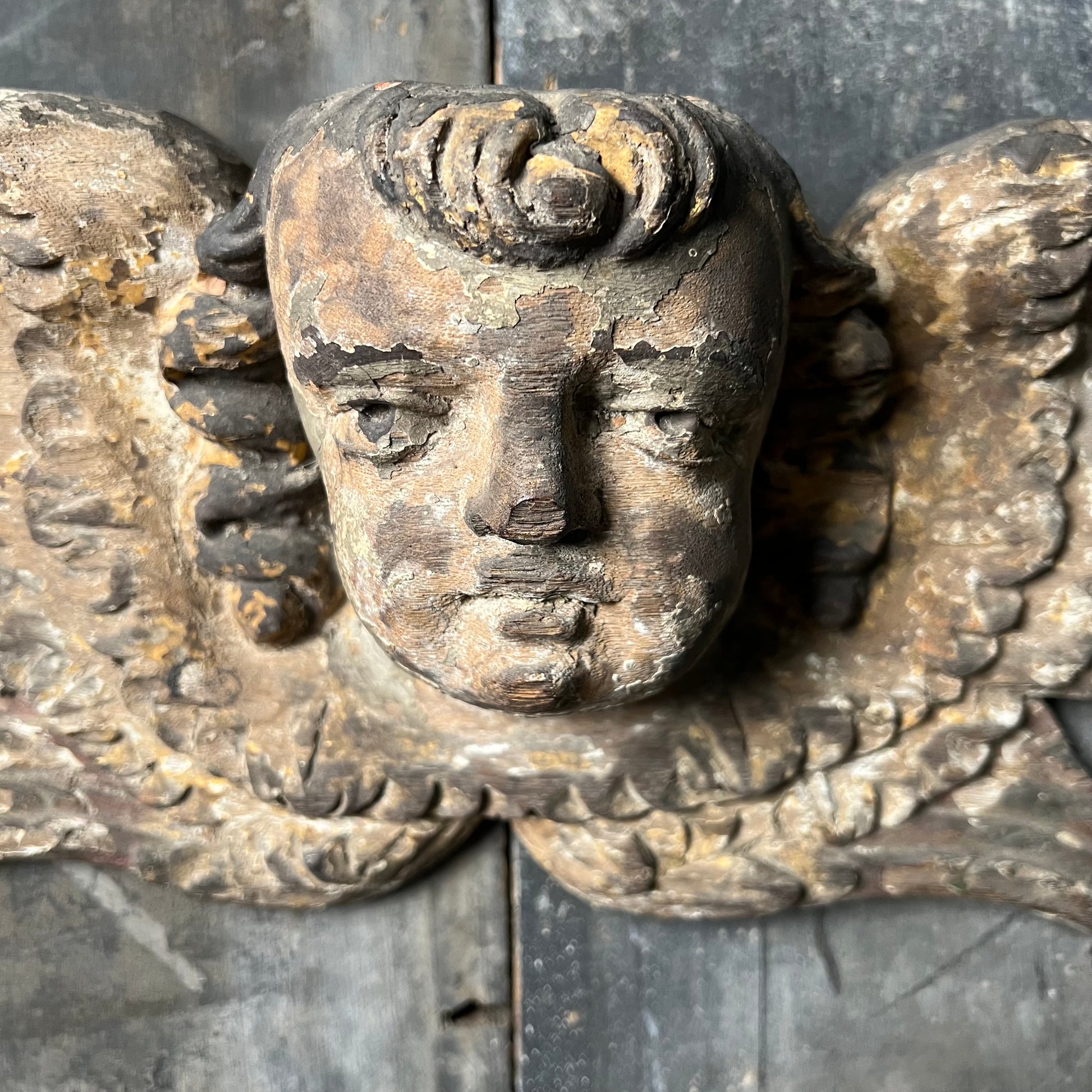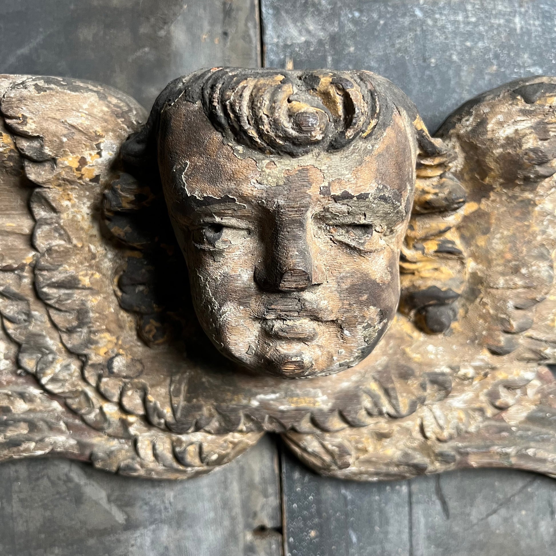 A wonderful example of religious art taking the form of this French carved Angel wall mount or frieze c.1750