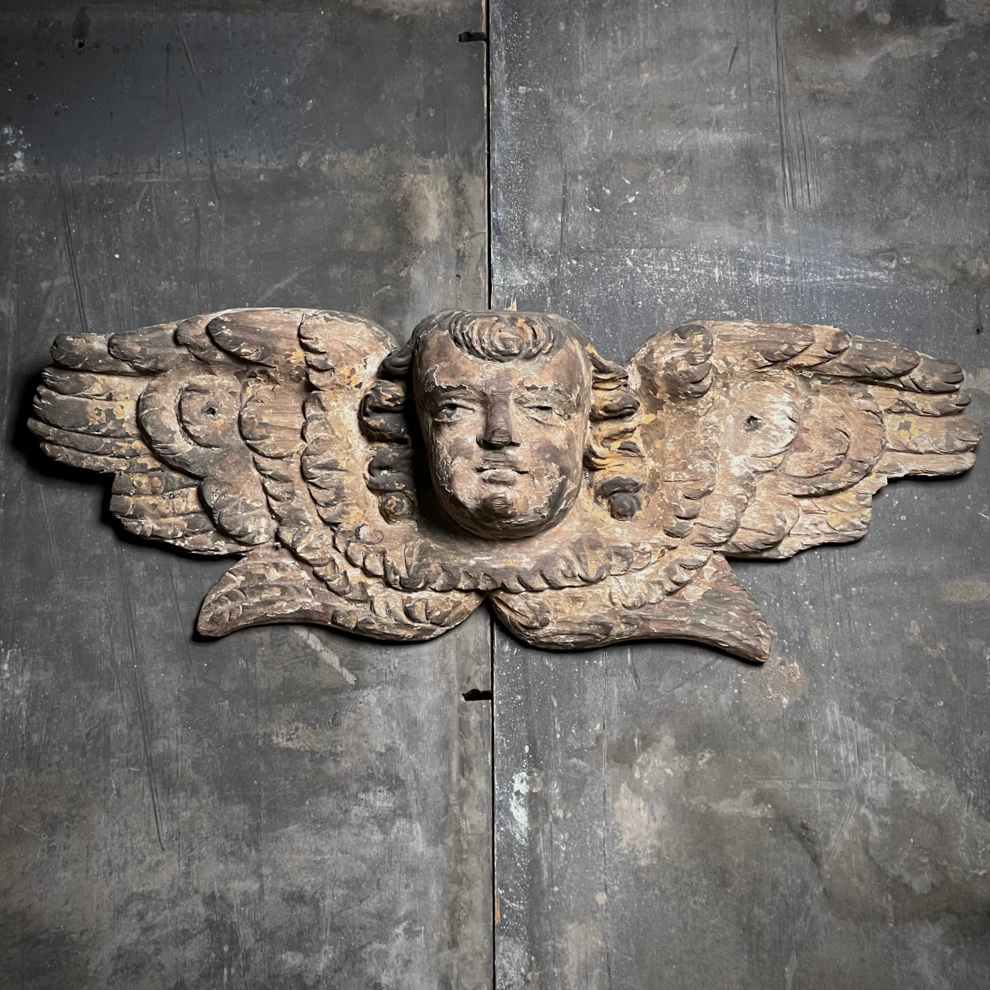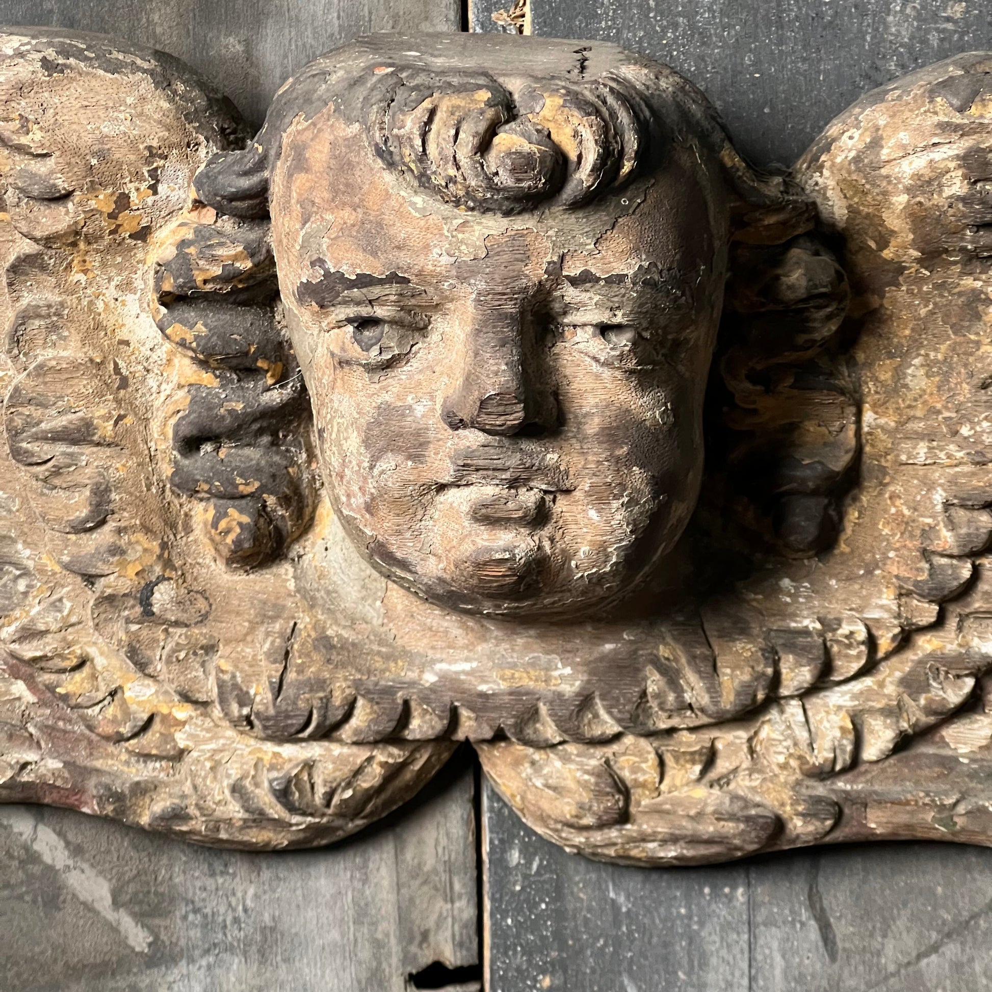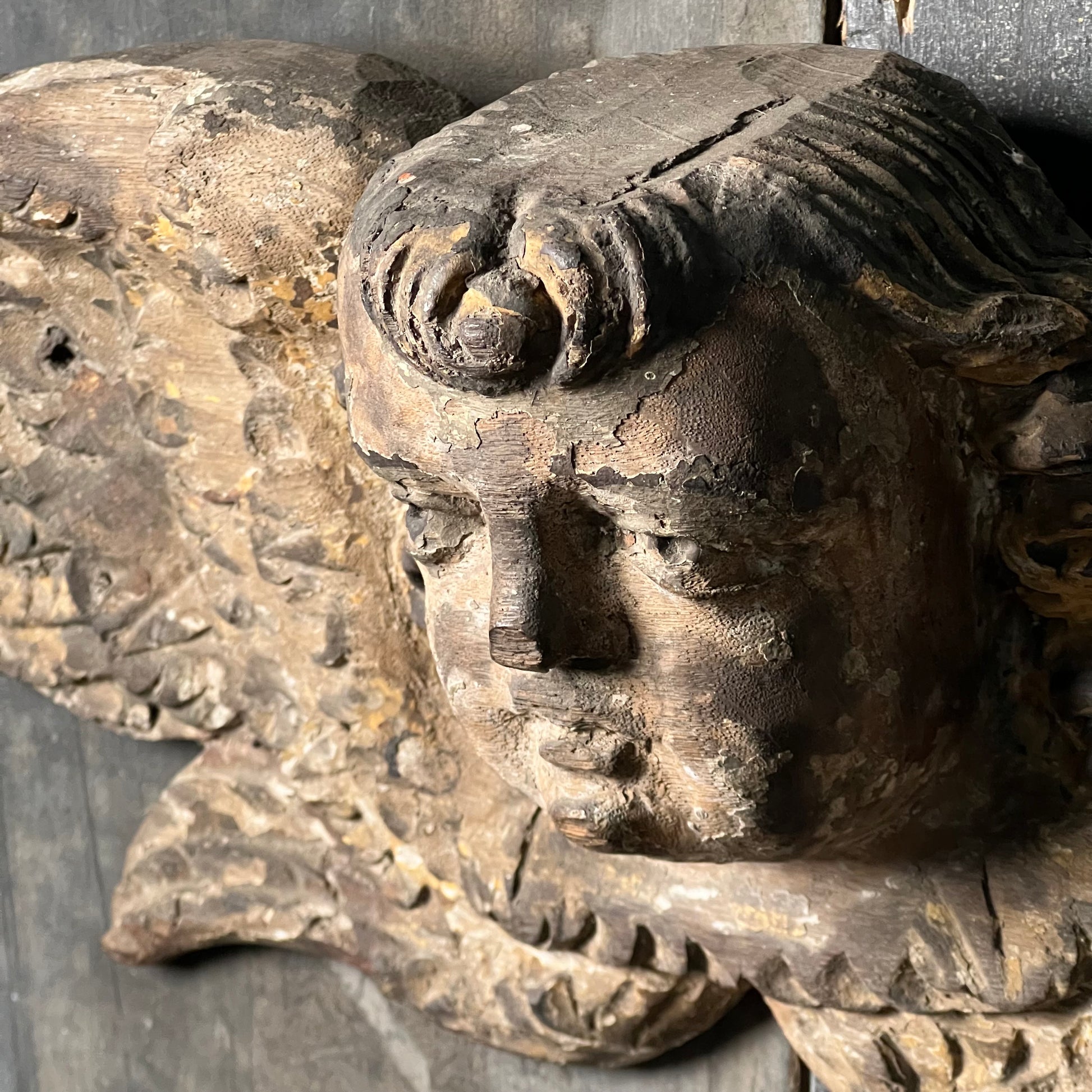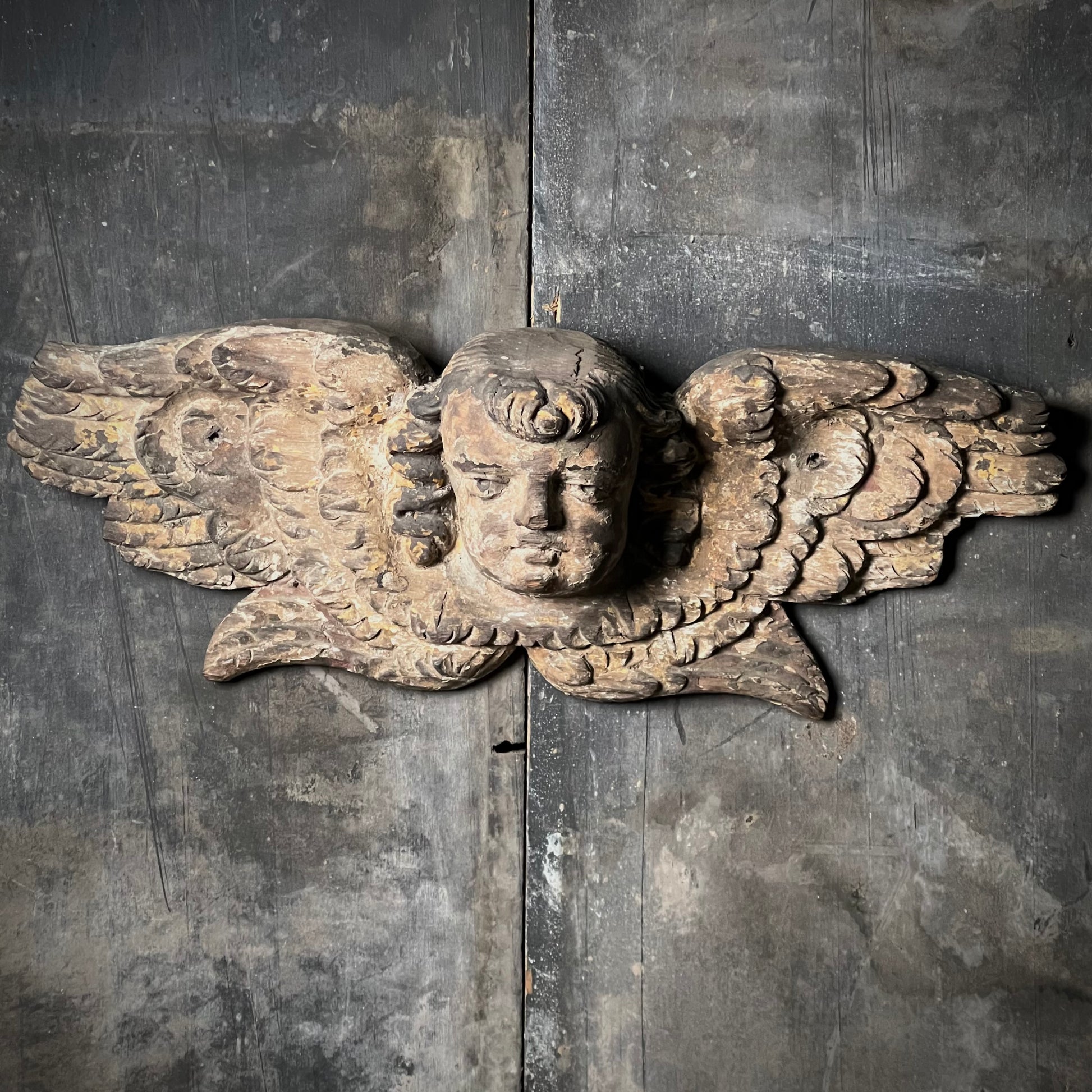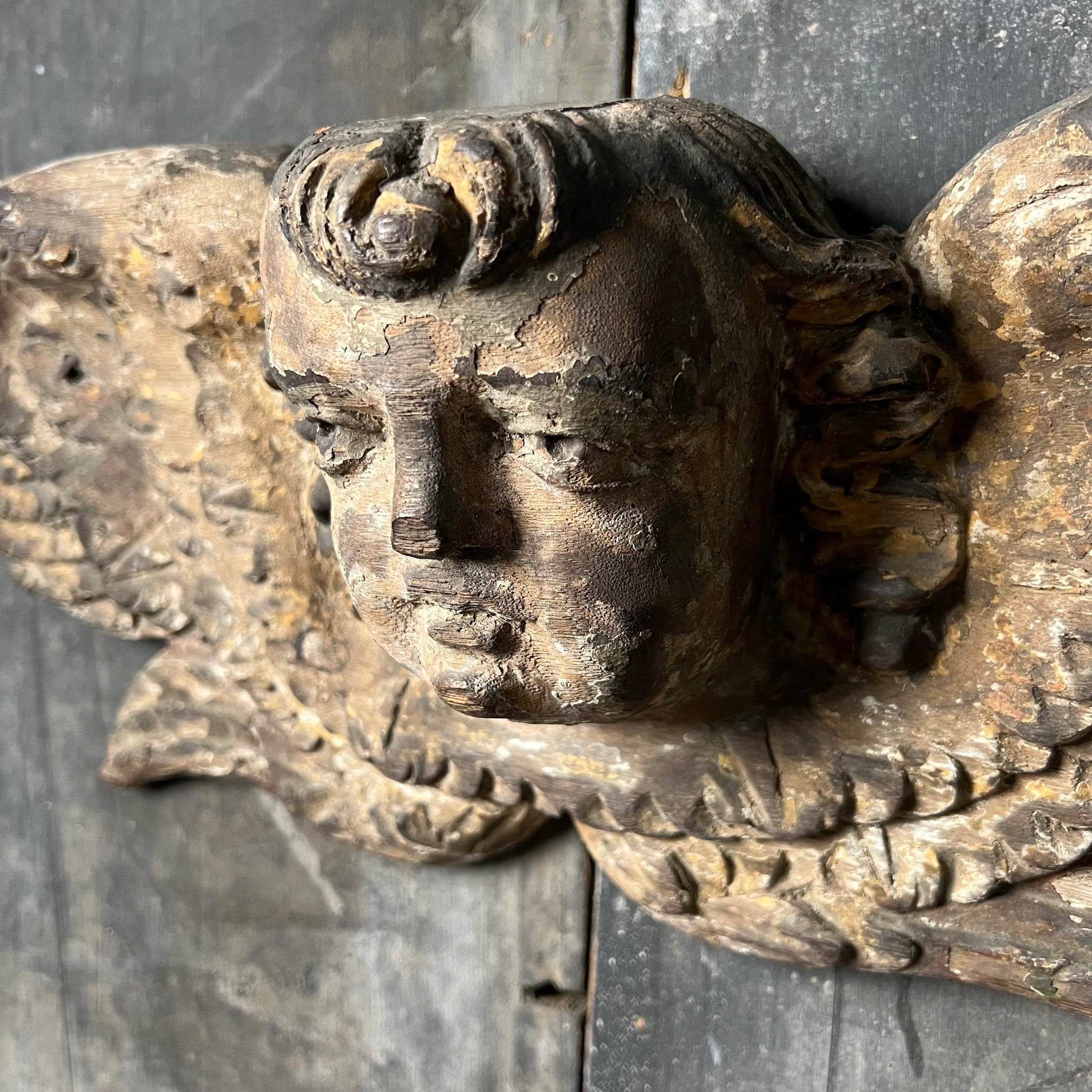 A wonderful example of religious art taking the form of this French carved Angel wall mount or frieze c.1750