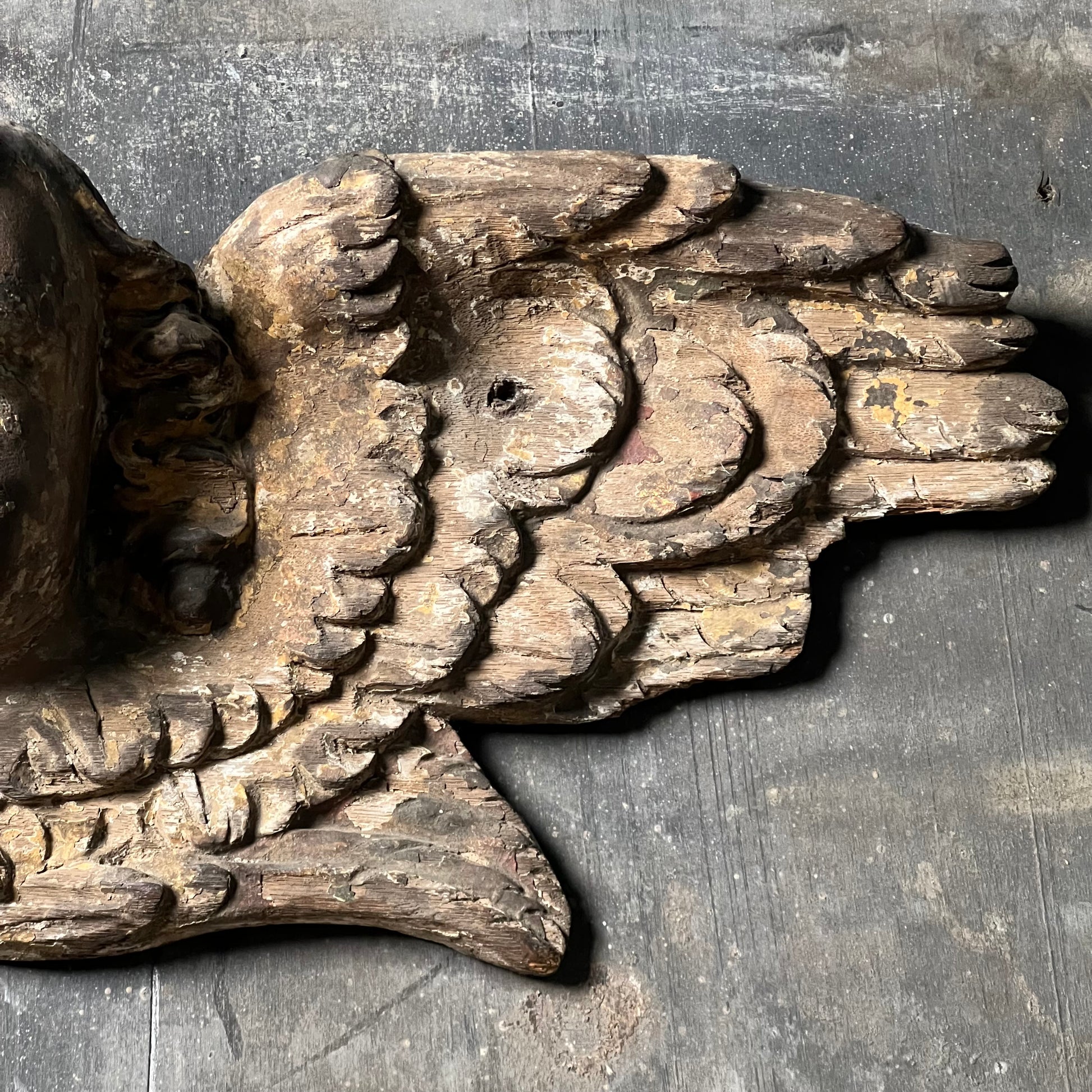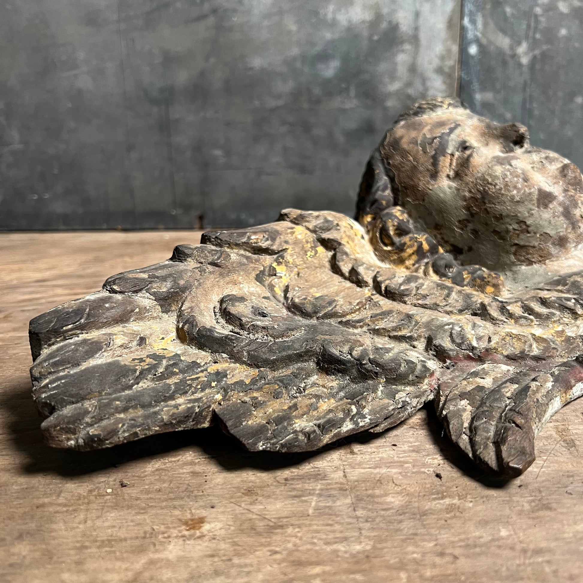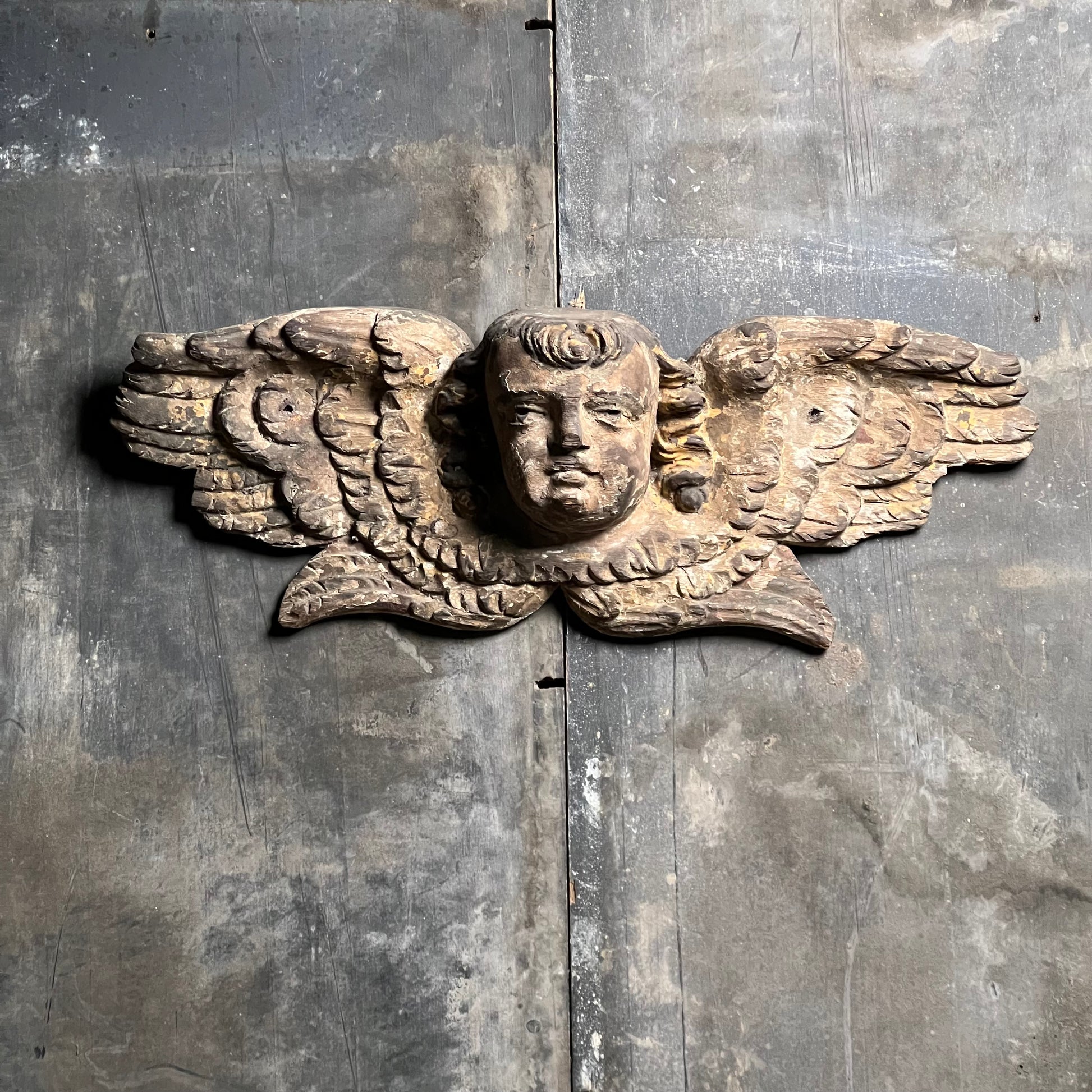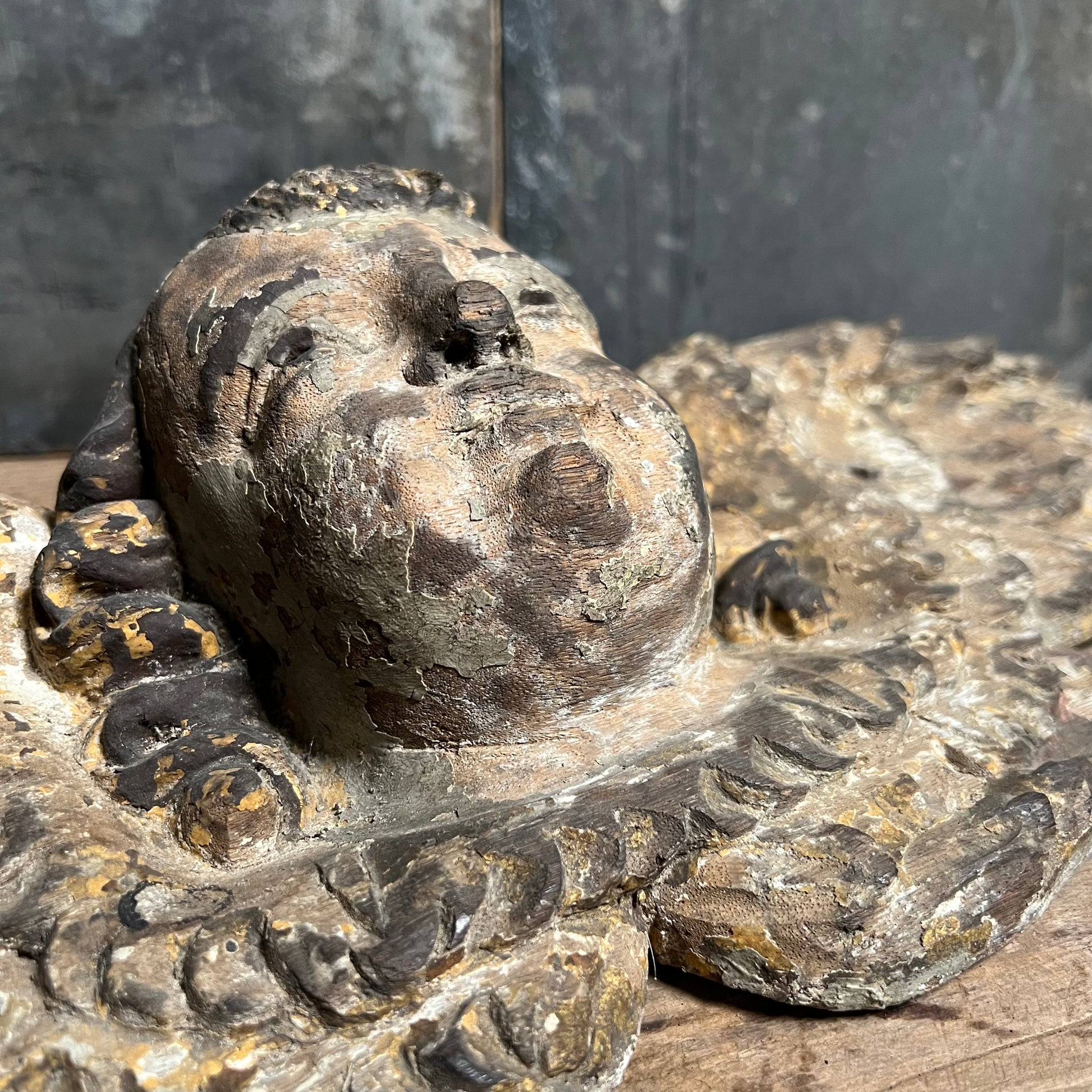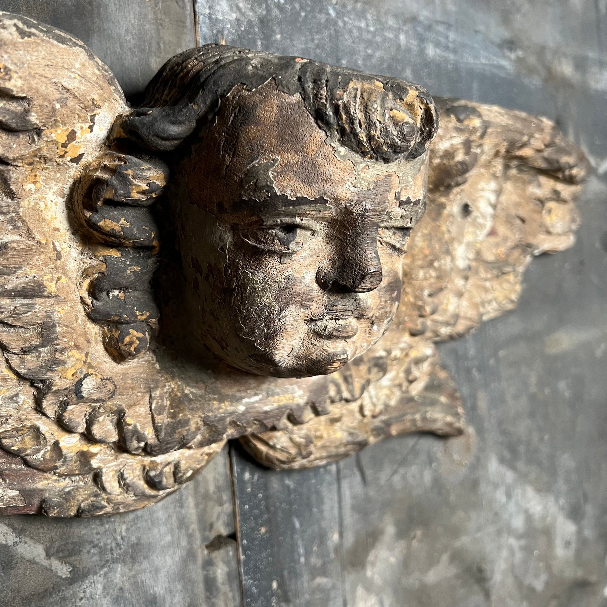 A wonderful example of religious art taking the form of this French carved Angel wall mount or frieze c.1750