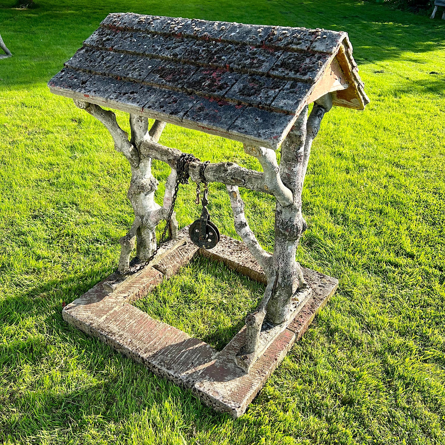 A unique and delightful French Faux Bois Wishing Well circa Early 20th Century.