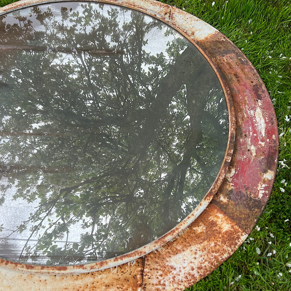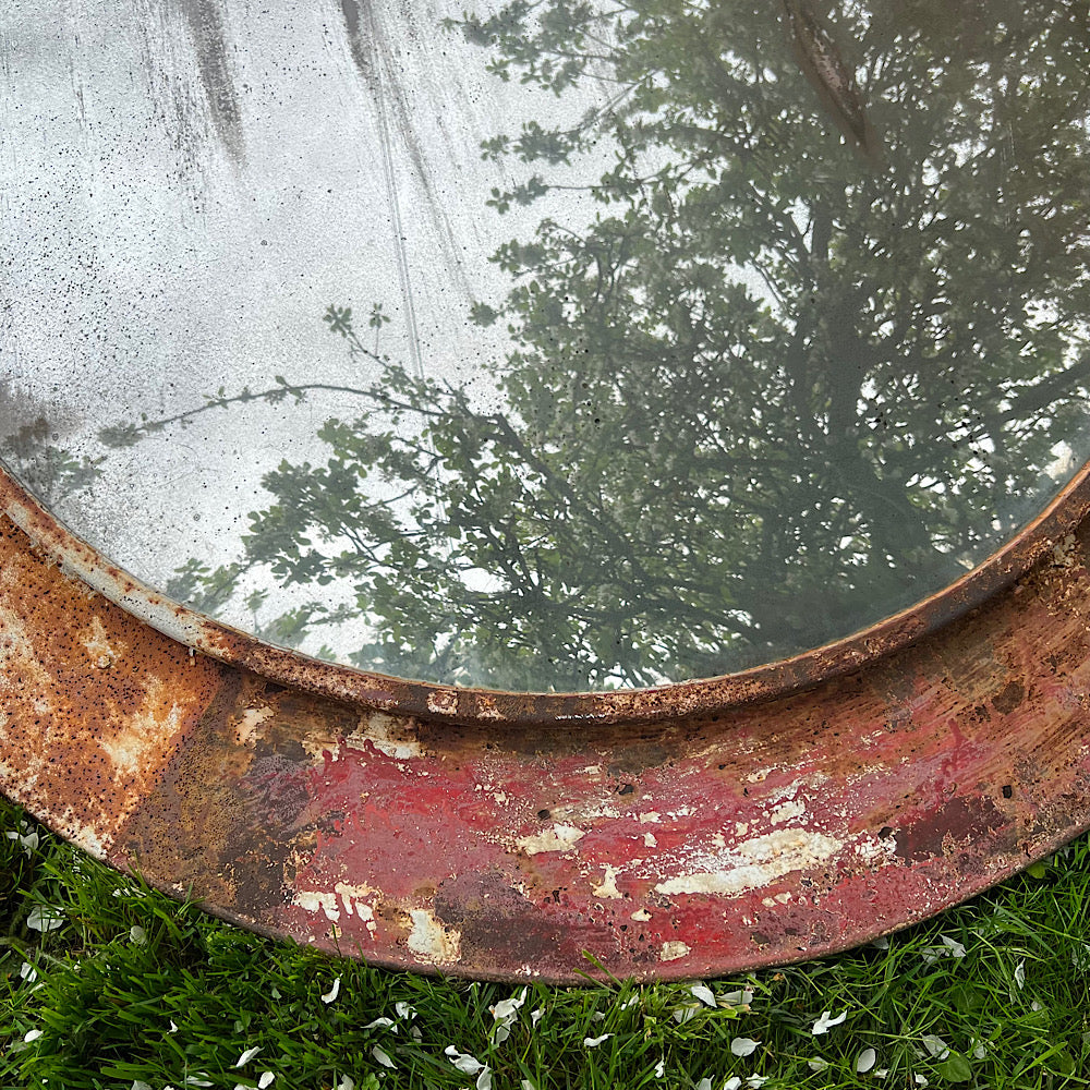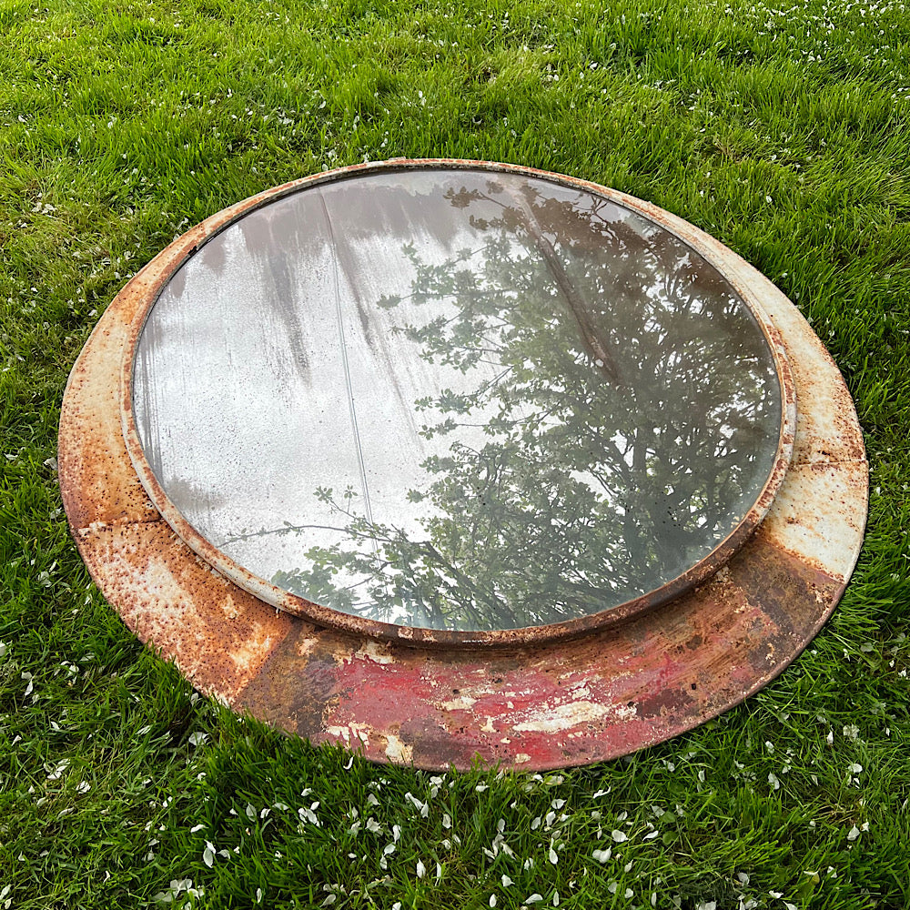 The mirror was originally sourced in the old Eastern bloc countries. A fantastic example of the industrial era, the mirrors were used in the shunting yards and on the railways of the old Communist Empire.