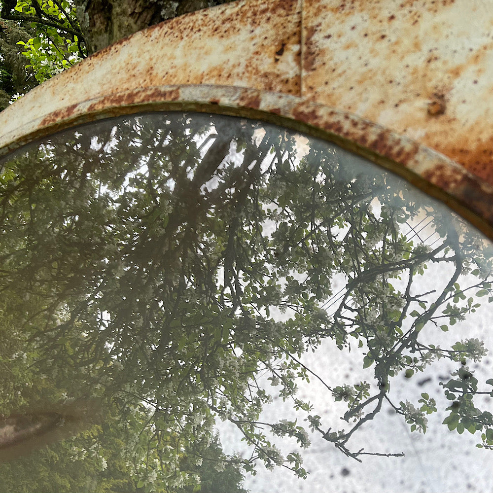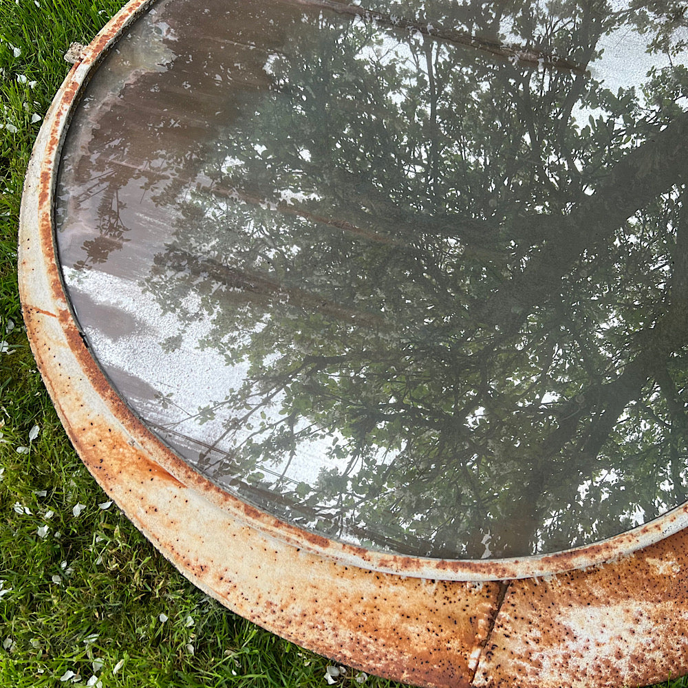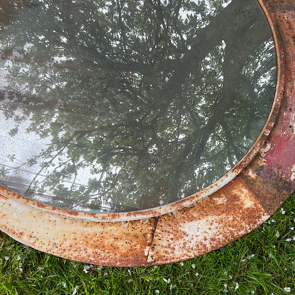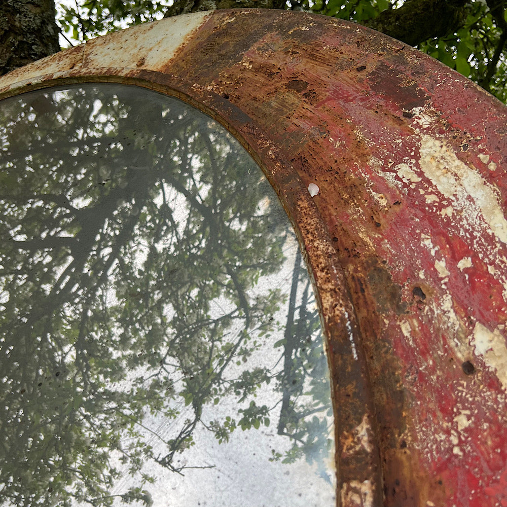 The mirror was originally sourced in the old Eastern bloc countries. A fantastic example of the industrial era, the mirrors were used in the shunting yards and on the railways of the old Communist Empire.