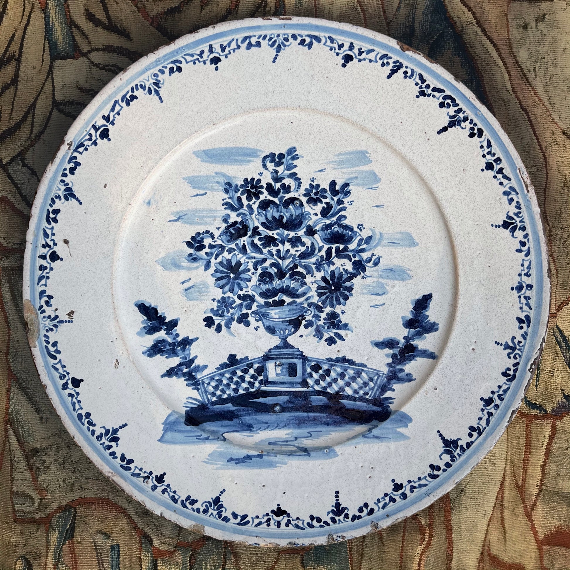 A delicately painted, romantic and beautiful large blue and white Delft charger c.1780