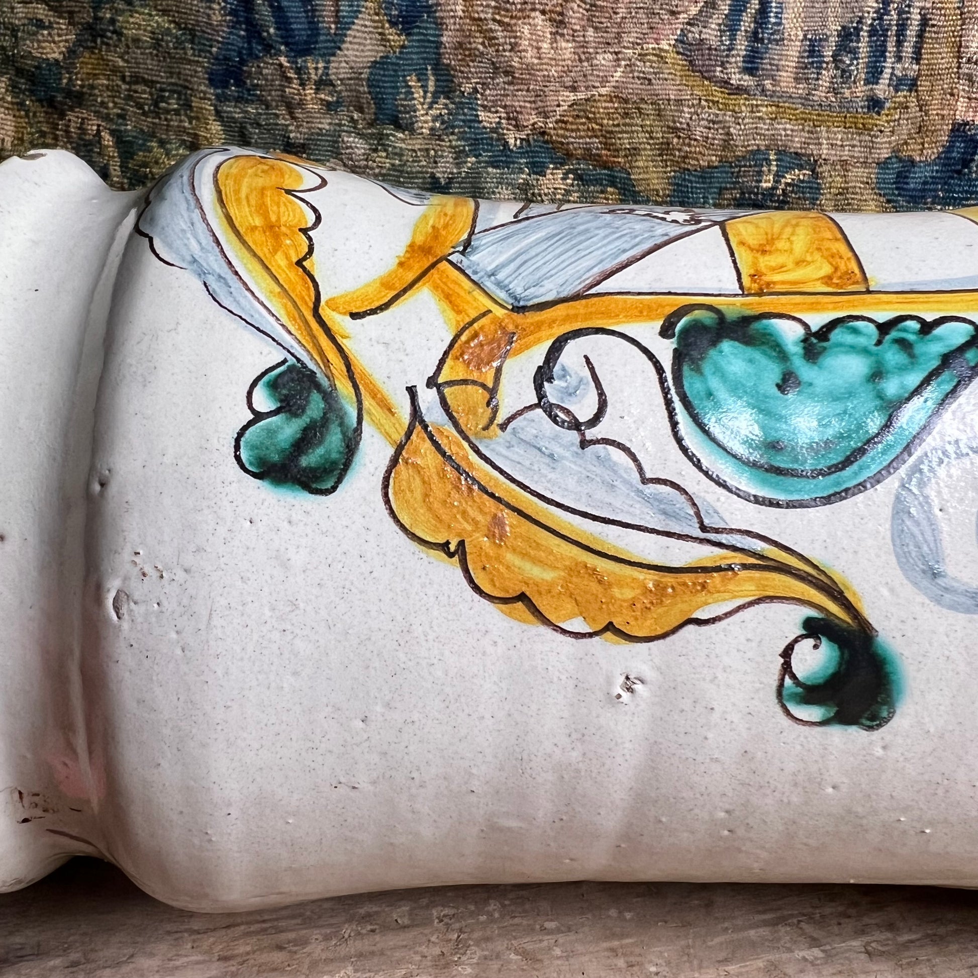 While the bold decorative armorial have occasionally led to Southern Italian attributions, the palette, glaze quality, clay body and painterly handling are firmly Tuscan and consistent with Montelupo Fiorentino workshop production at the turn of the 17th and 18th centuries. Heraldic devices of this type were commonly employed as emblematic identifiers for civic or institutional pharmacies rather than as strictly genealogical arms.