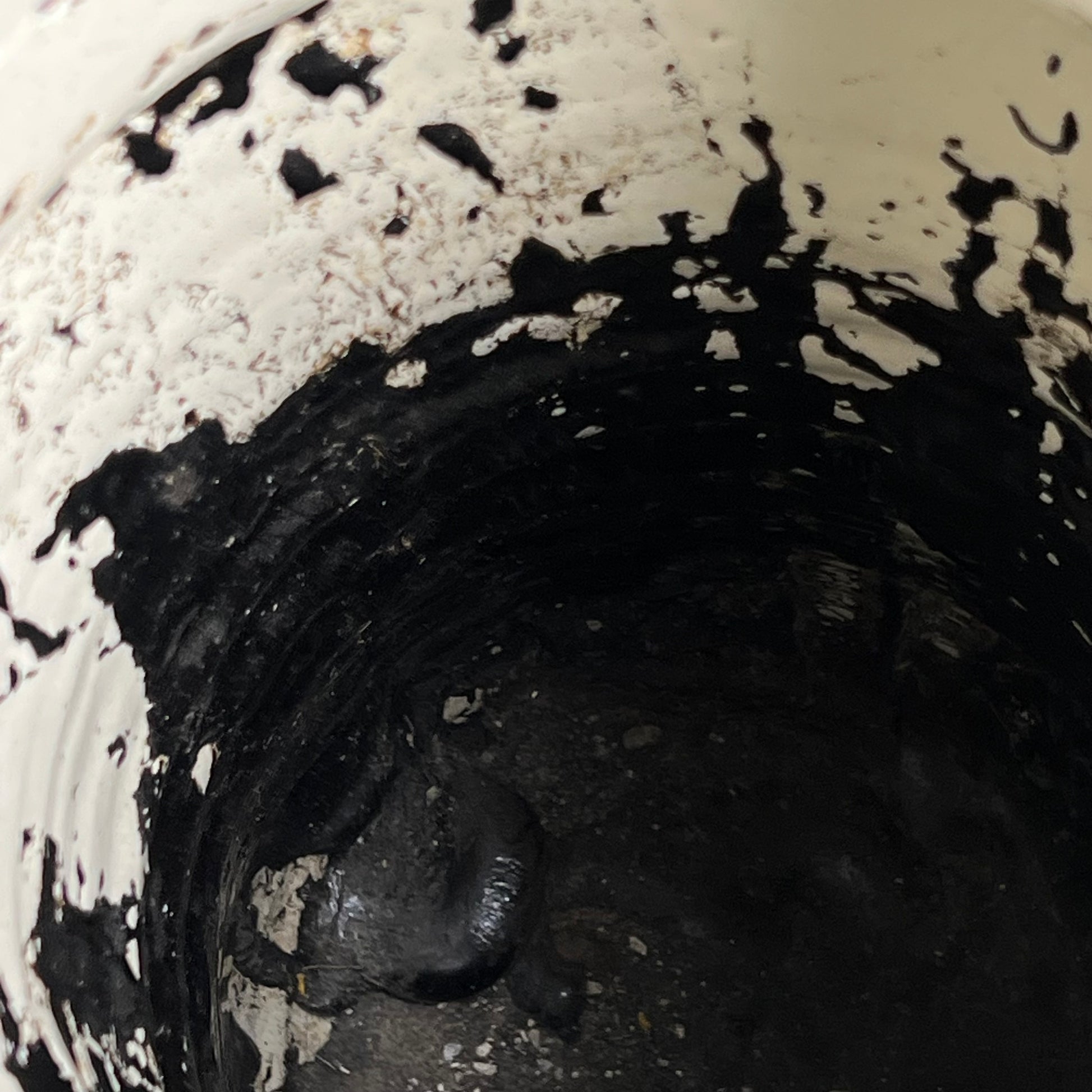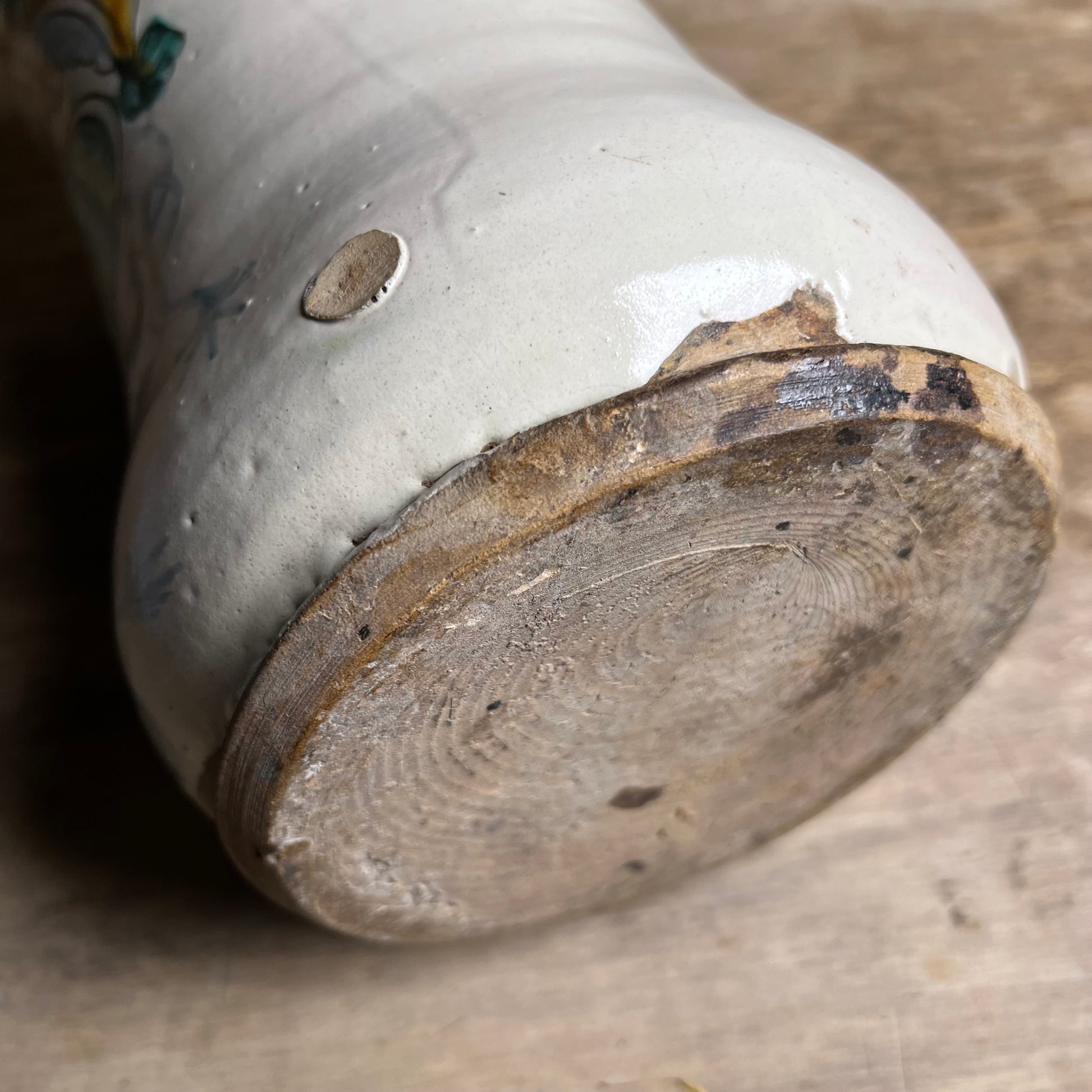 The interior retains a heavily darkened glaze with a substantial consolidated accretion at the base. The result of long-term pharmaceutical use and the storage of resinous compounds such as balsams, pitches and medicinal preparations, which oxidised and hardened over time.