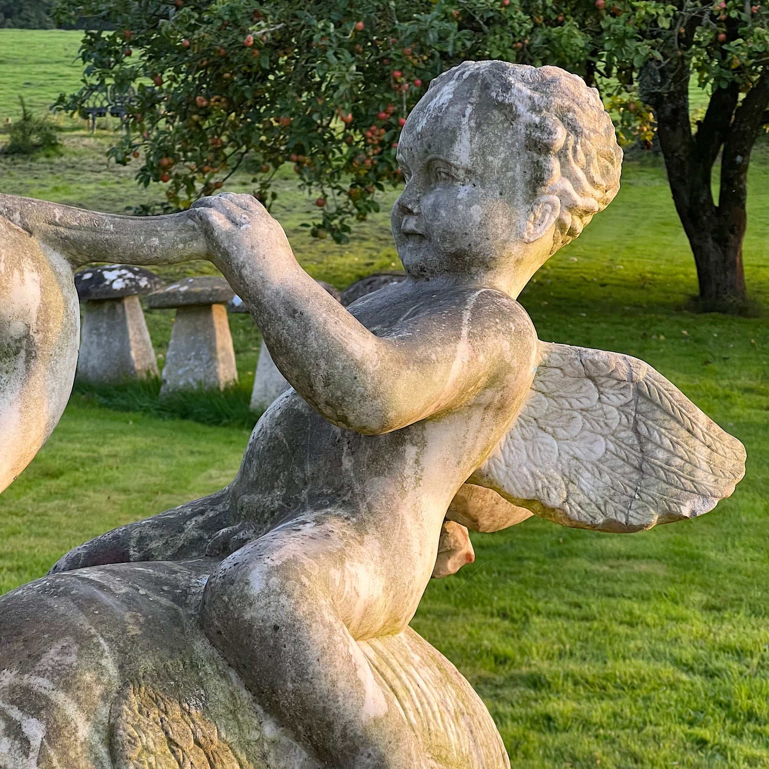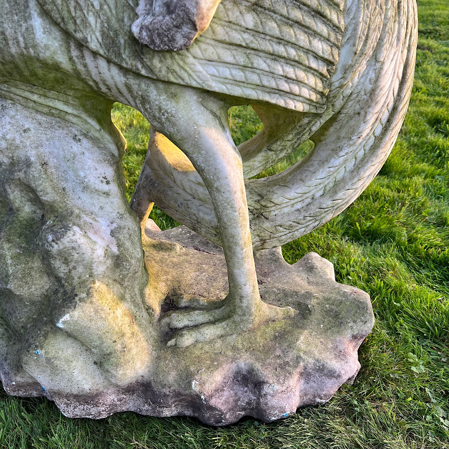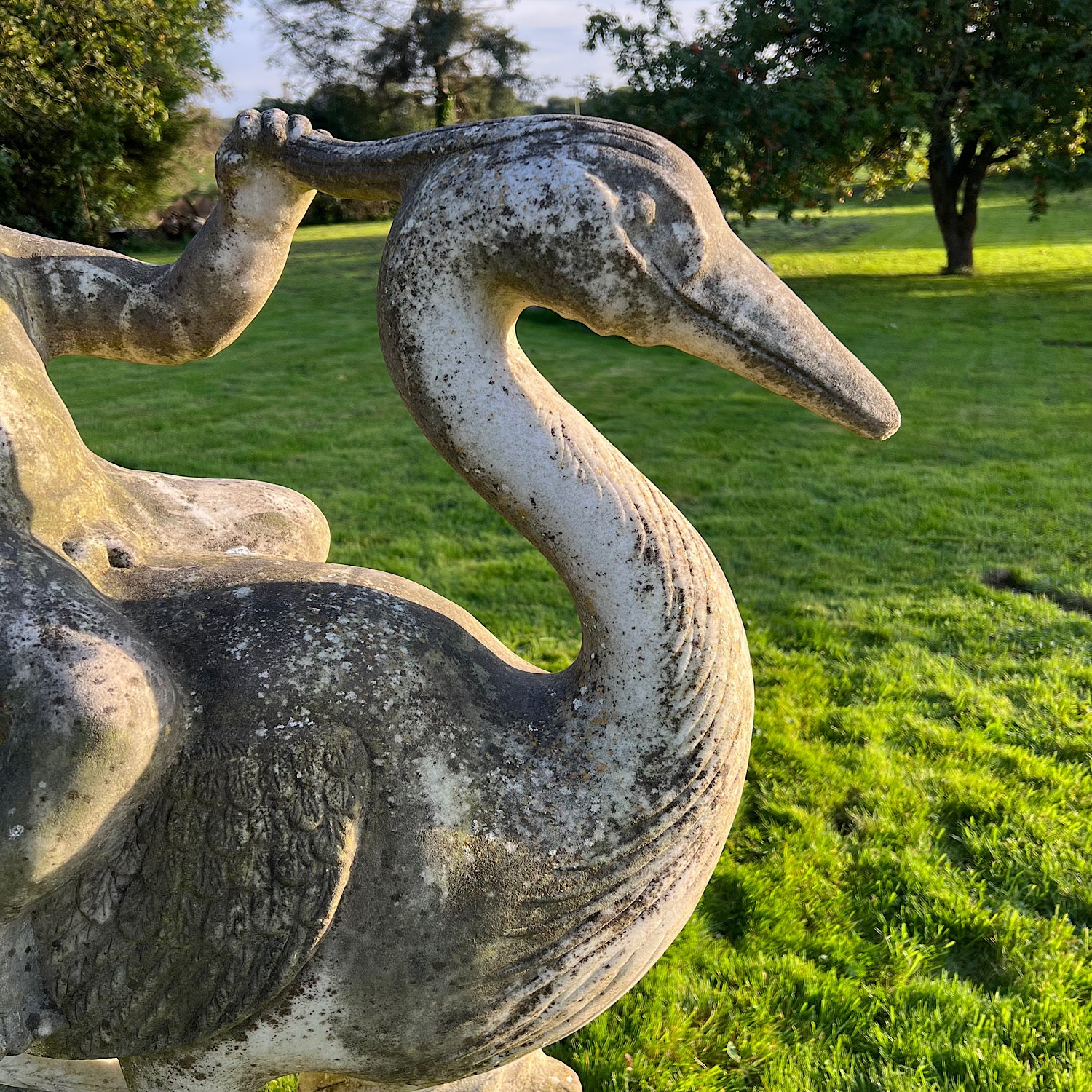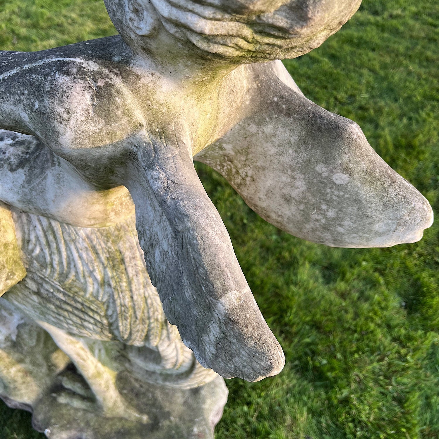 An enchanting statue depicting of a Winged Cupid riding a Stork. Mid 20th Century.
