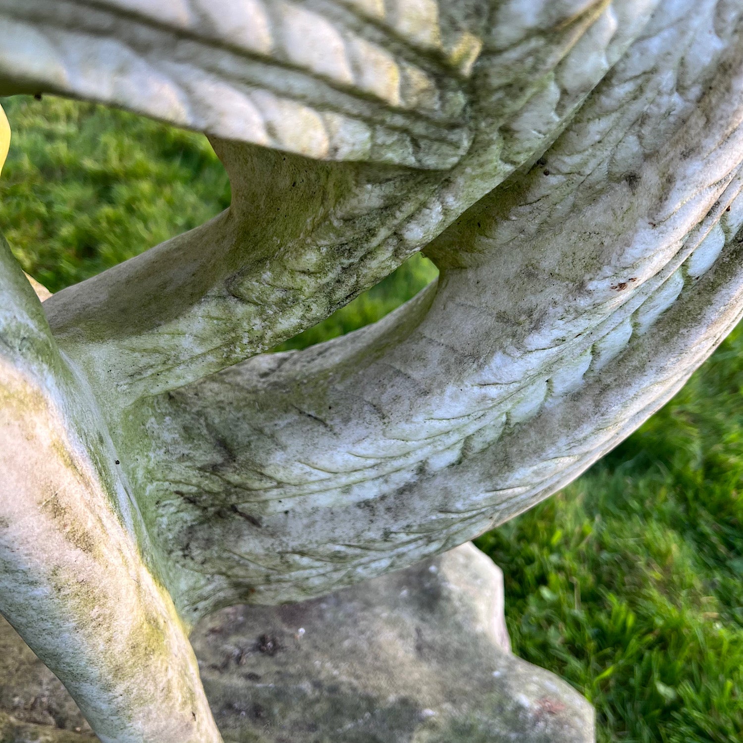 Large Marble Winged Cupid & Stork Statue Mid 20th Century