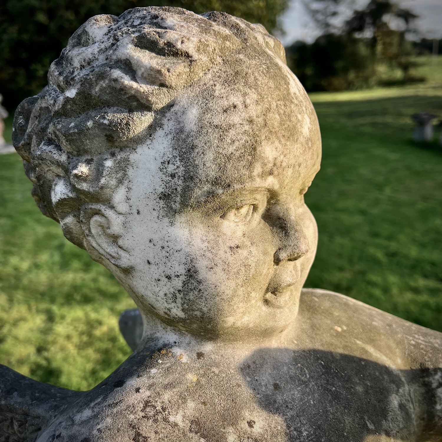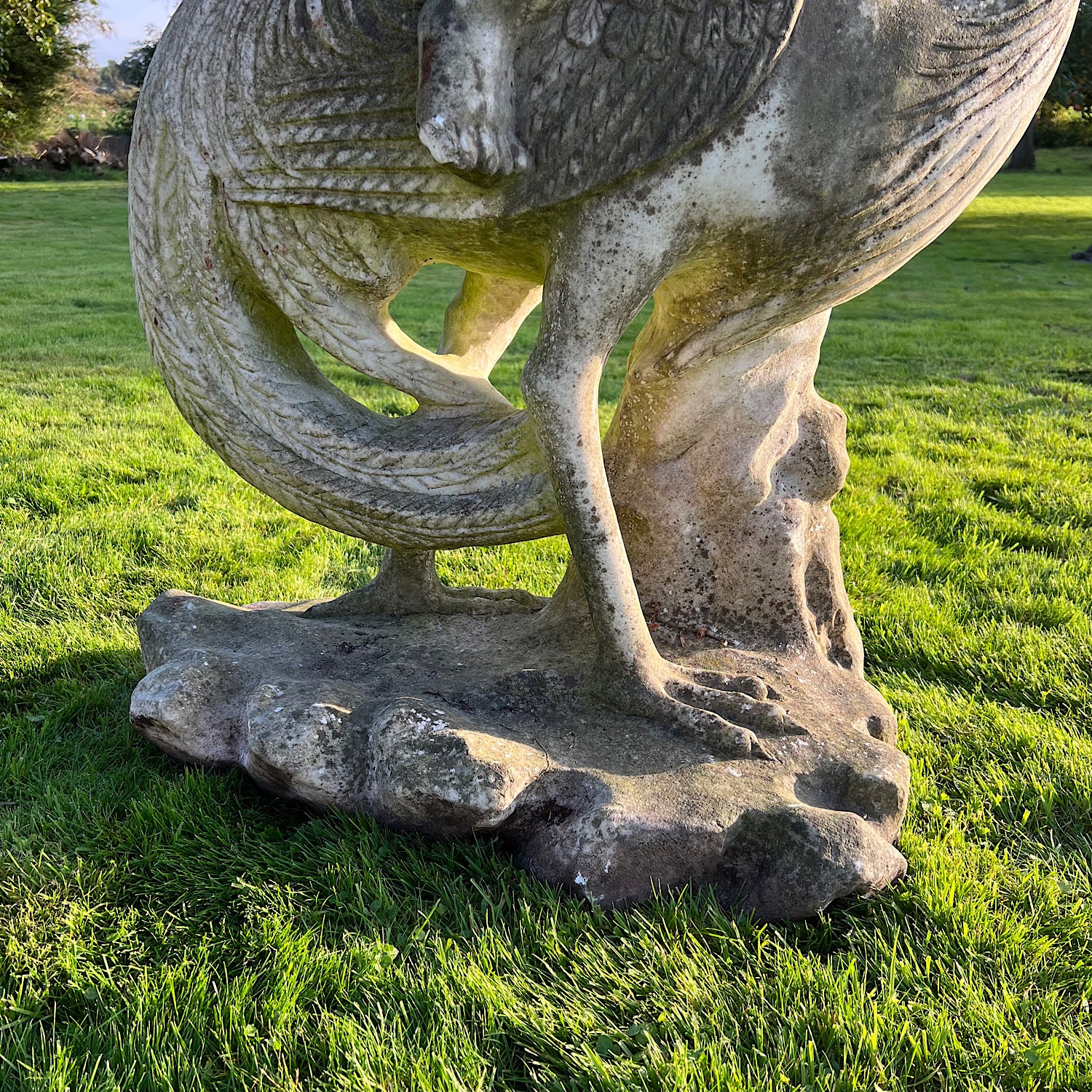 The surface is beautifully patinated and coloured through time with lichen, there are a number of historical repairs which can be seen in the images and nibbles, but nevertheless do not take away from the magic and charm of this unique and outstanding garden sculpture.