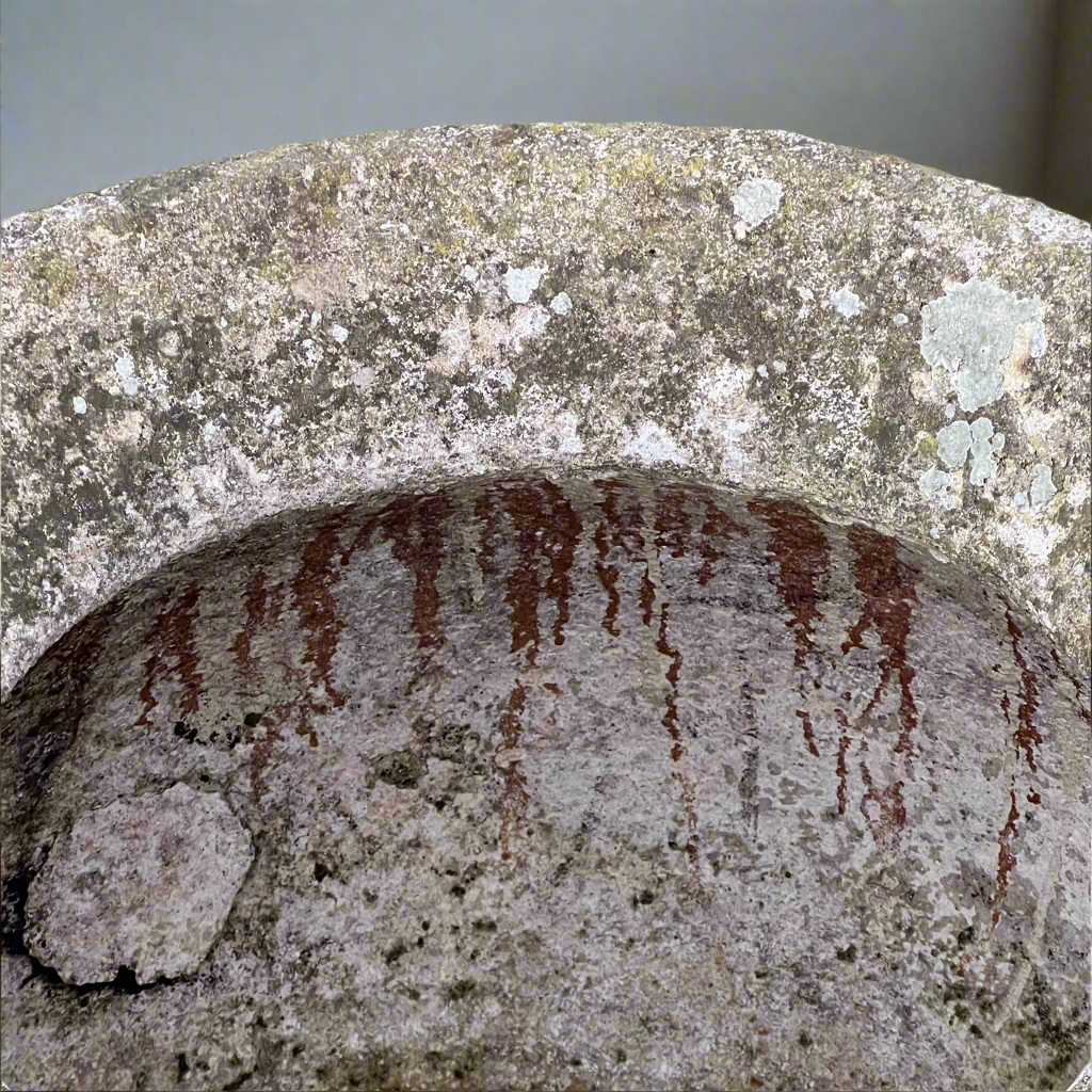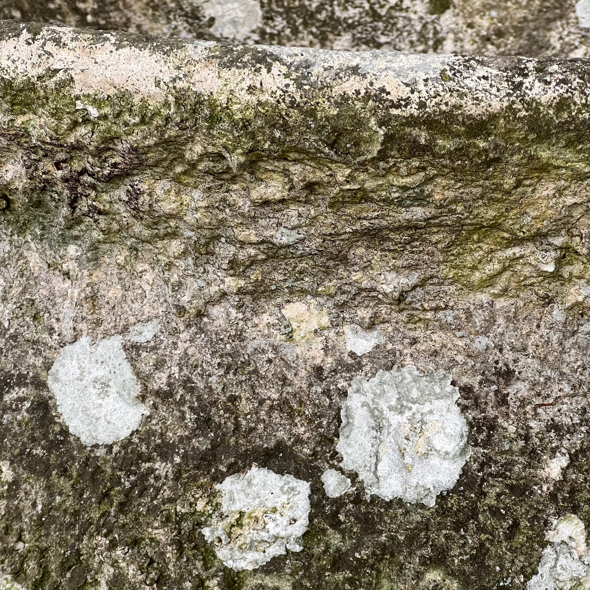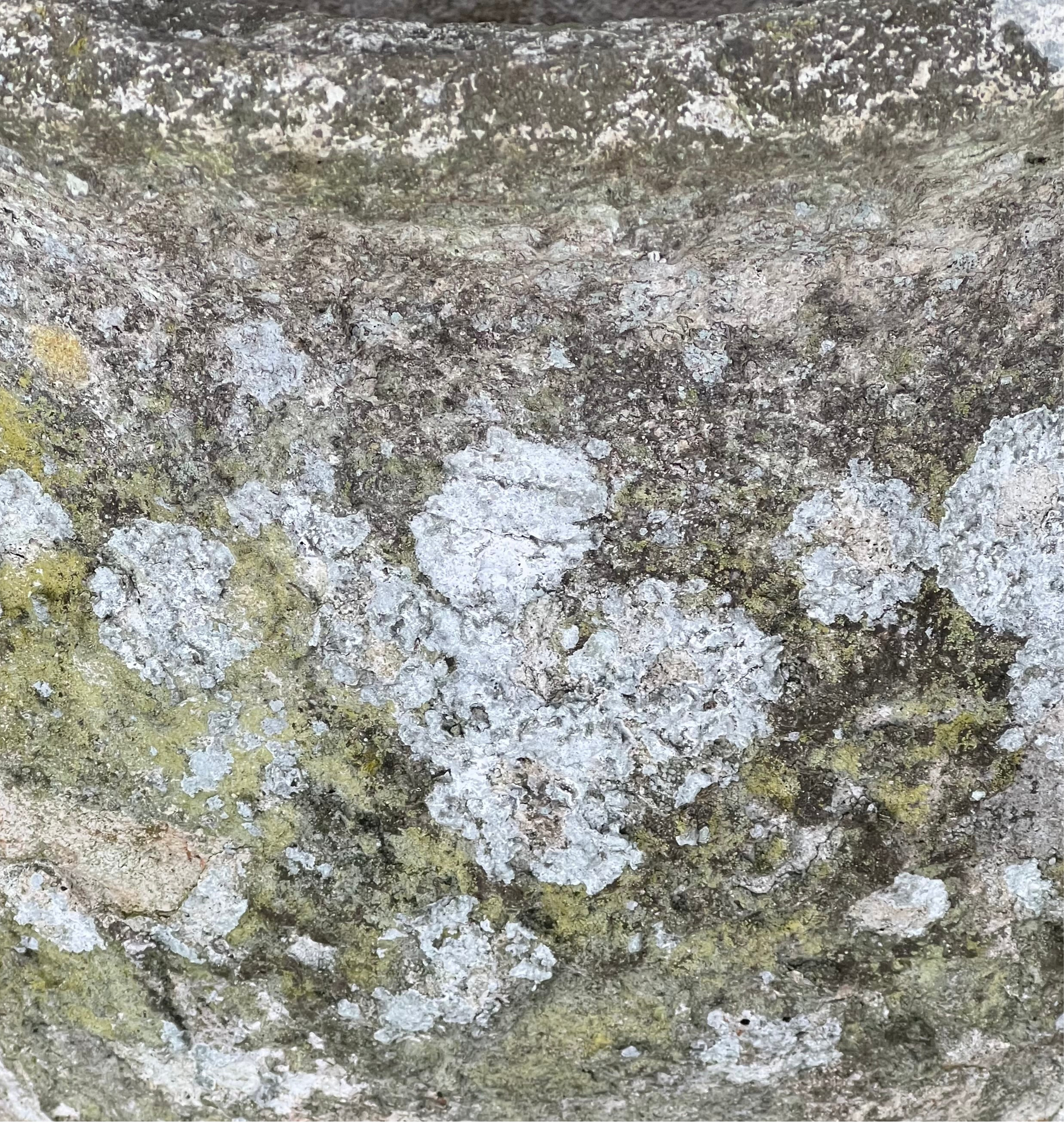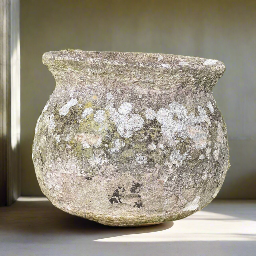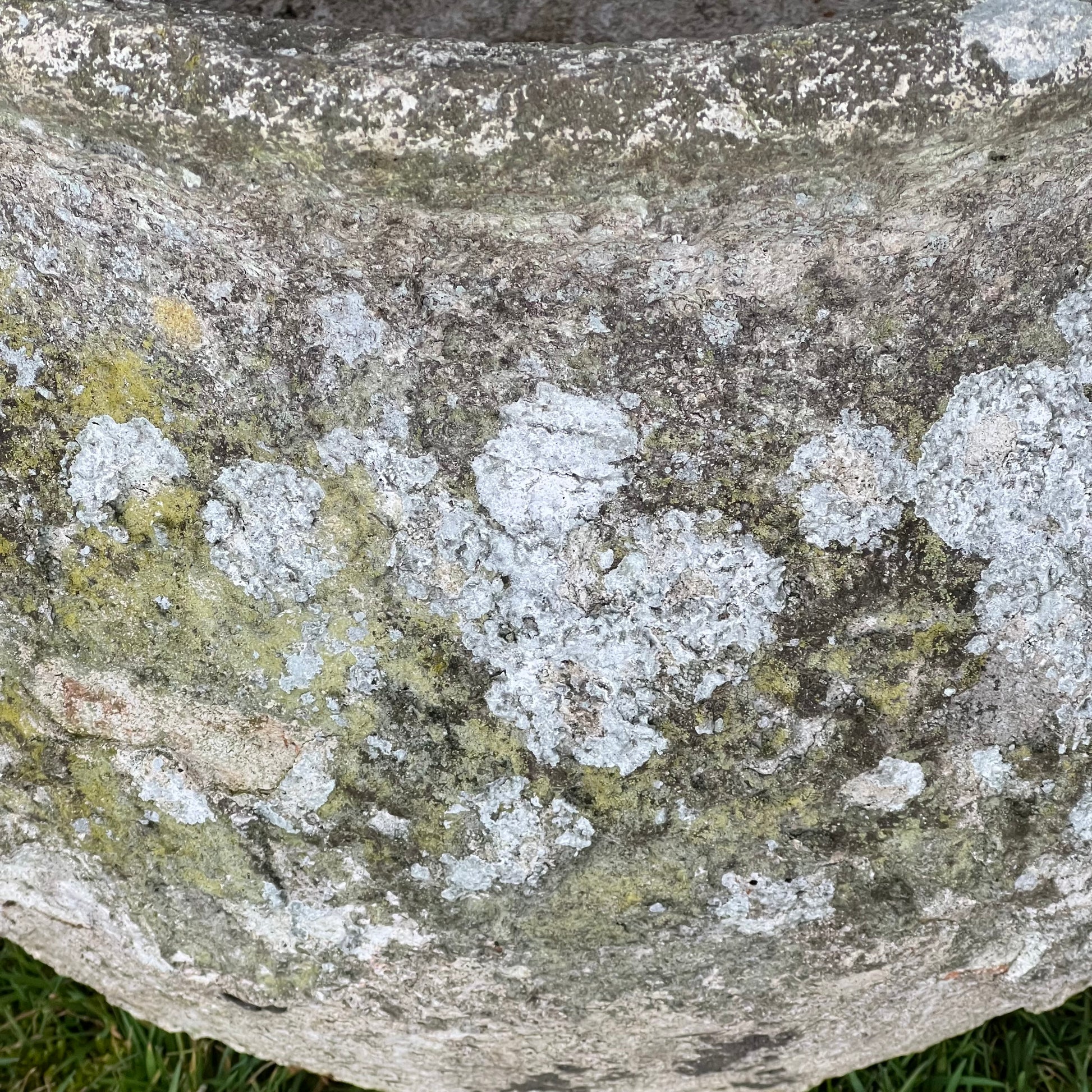 An incredibly crusty and lichen covered cauldron shaped composite planter created in the 20th Century.