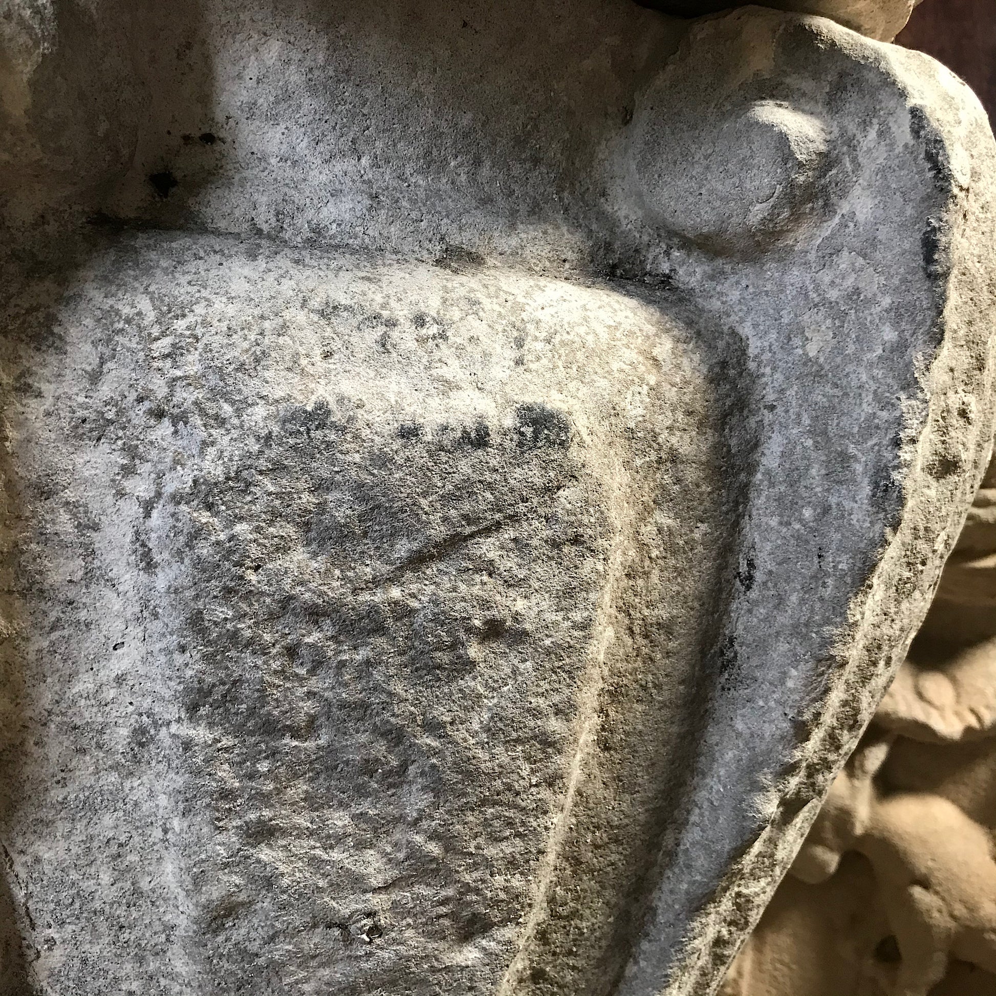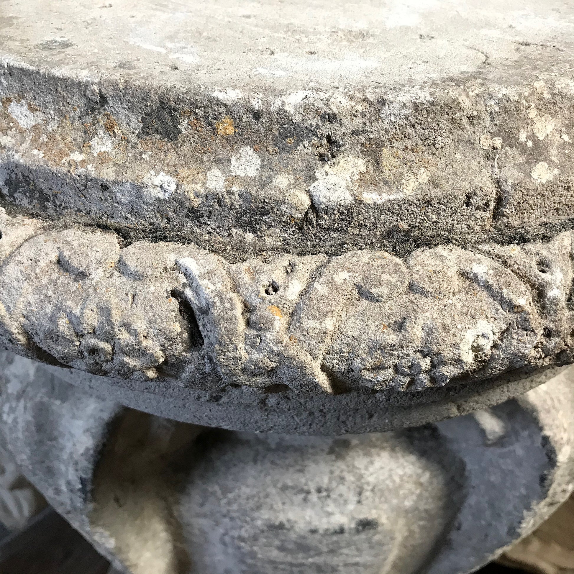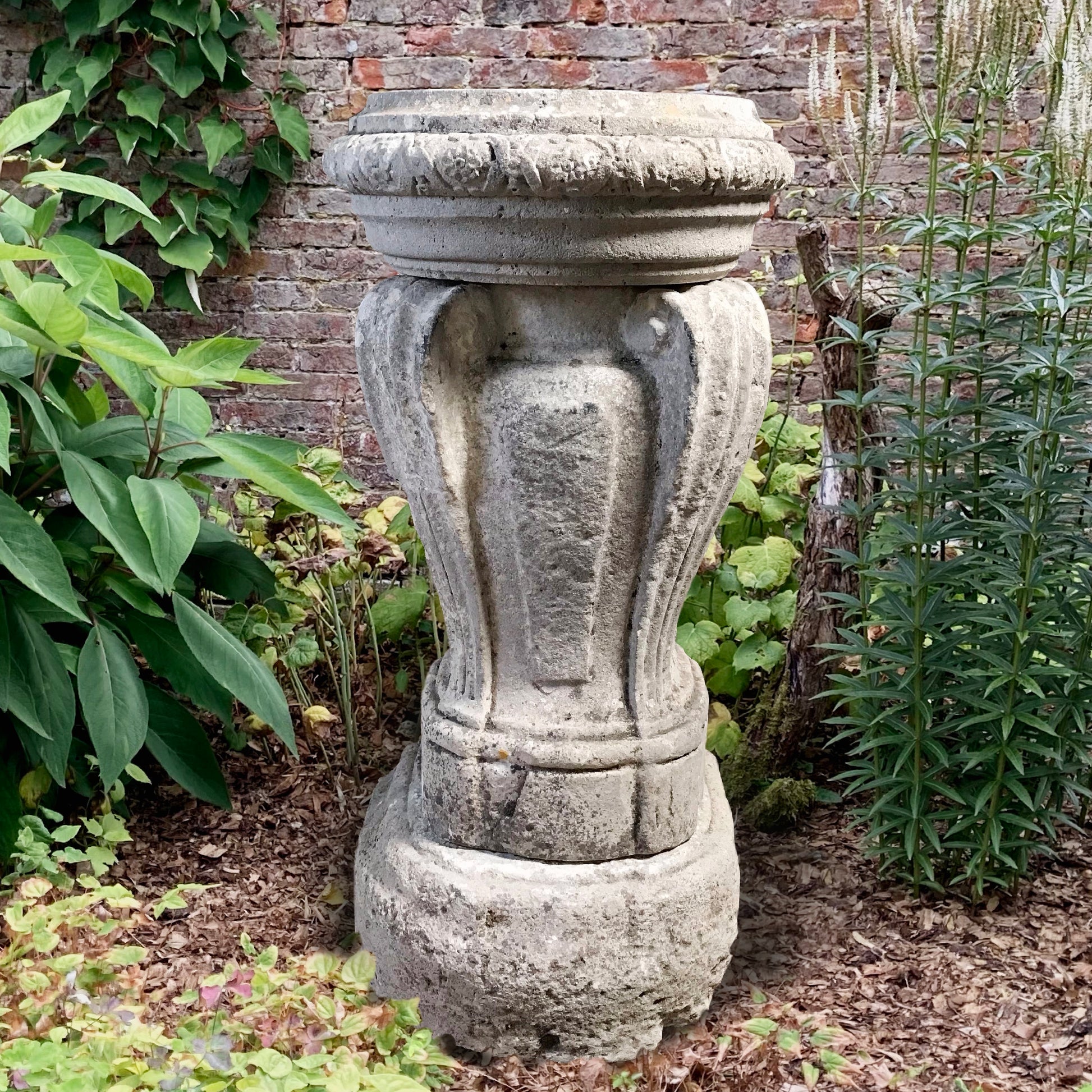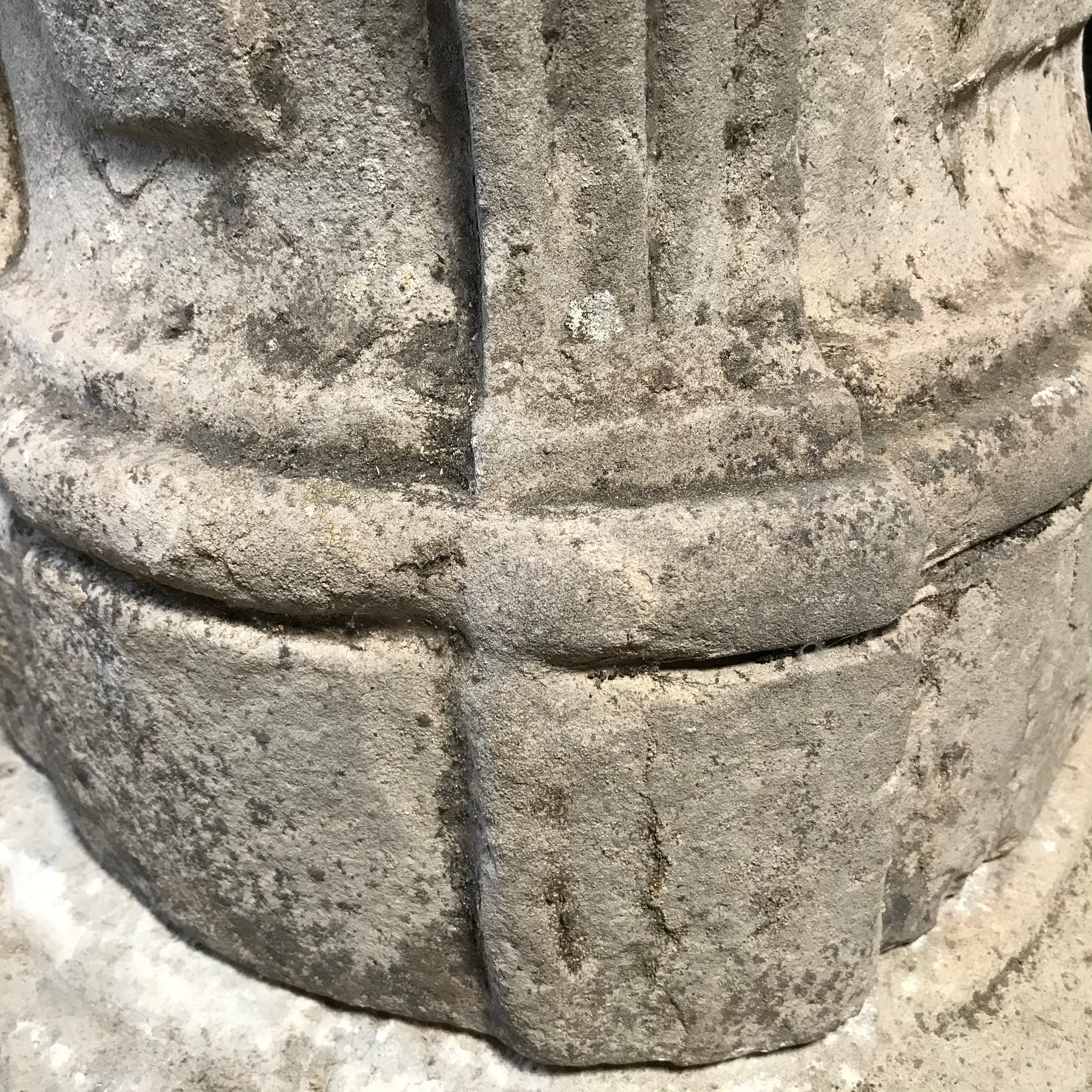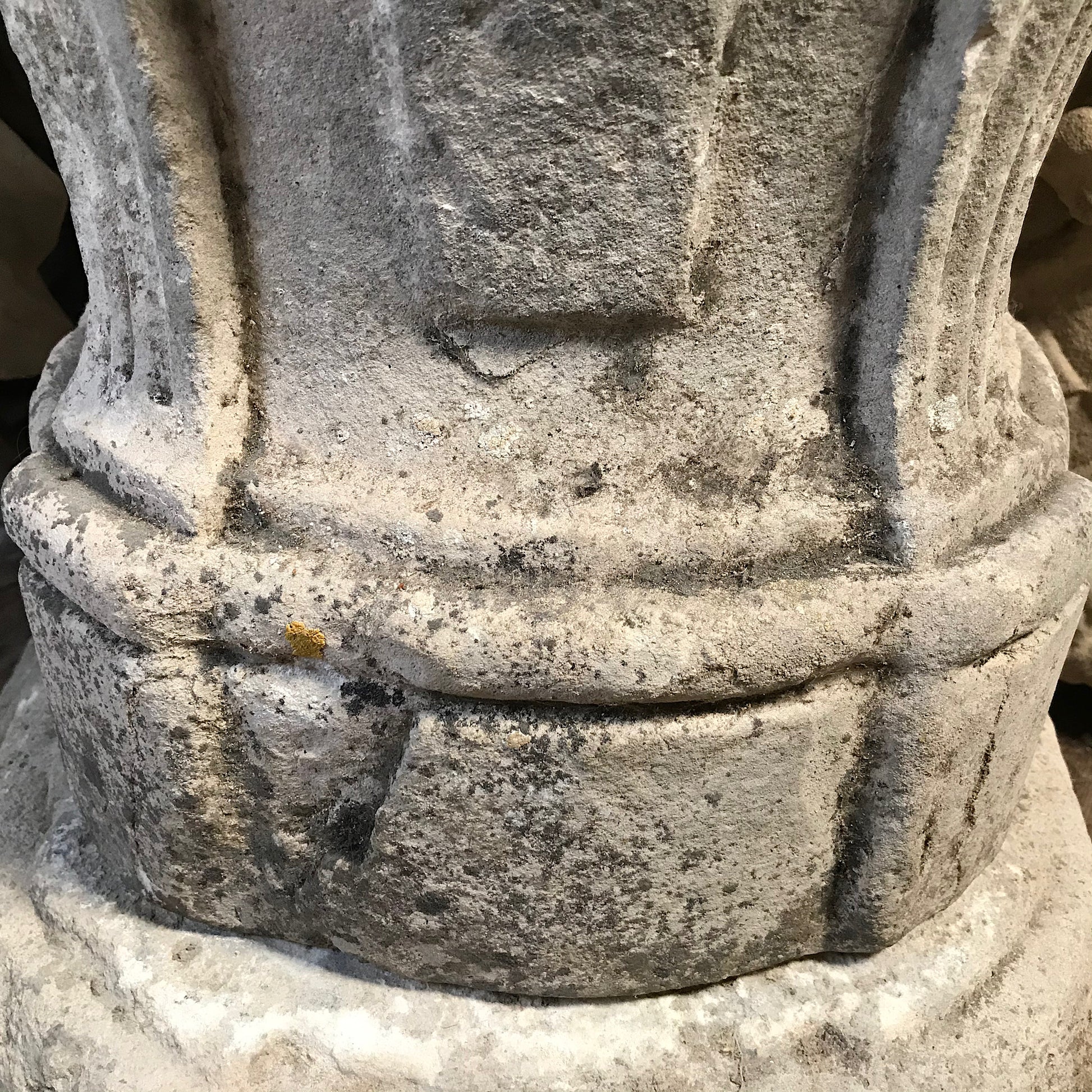 A striking sectional French carved stone pedestal c.1670 with later carved stone top.