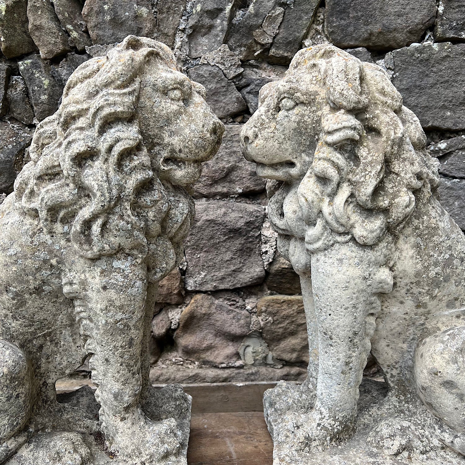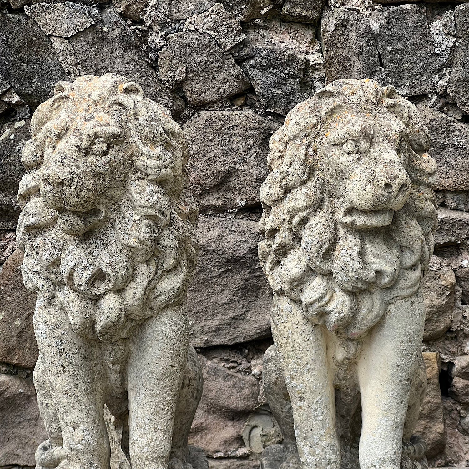 Stone Composite Lions Mid 20th Century